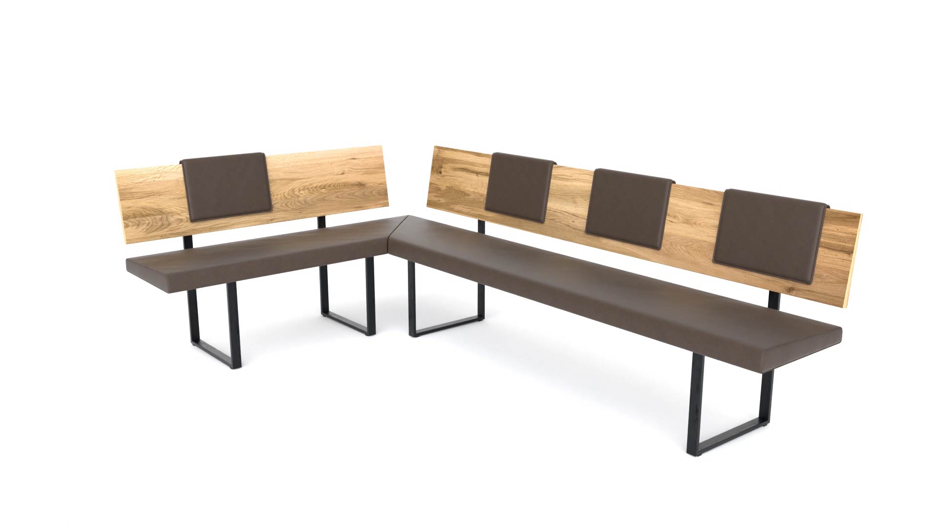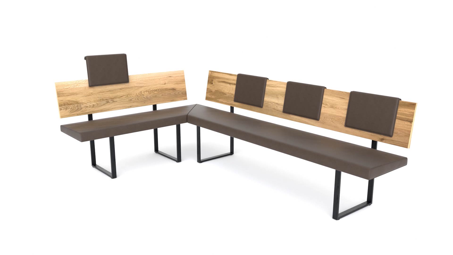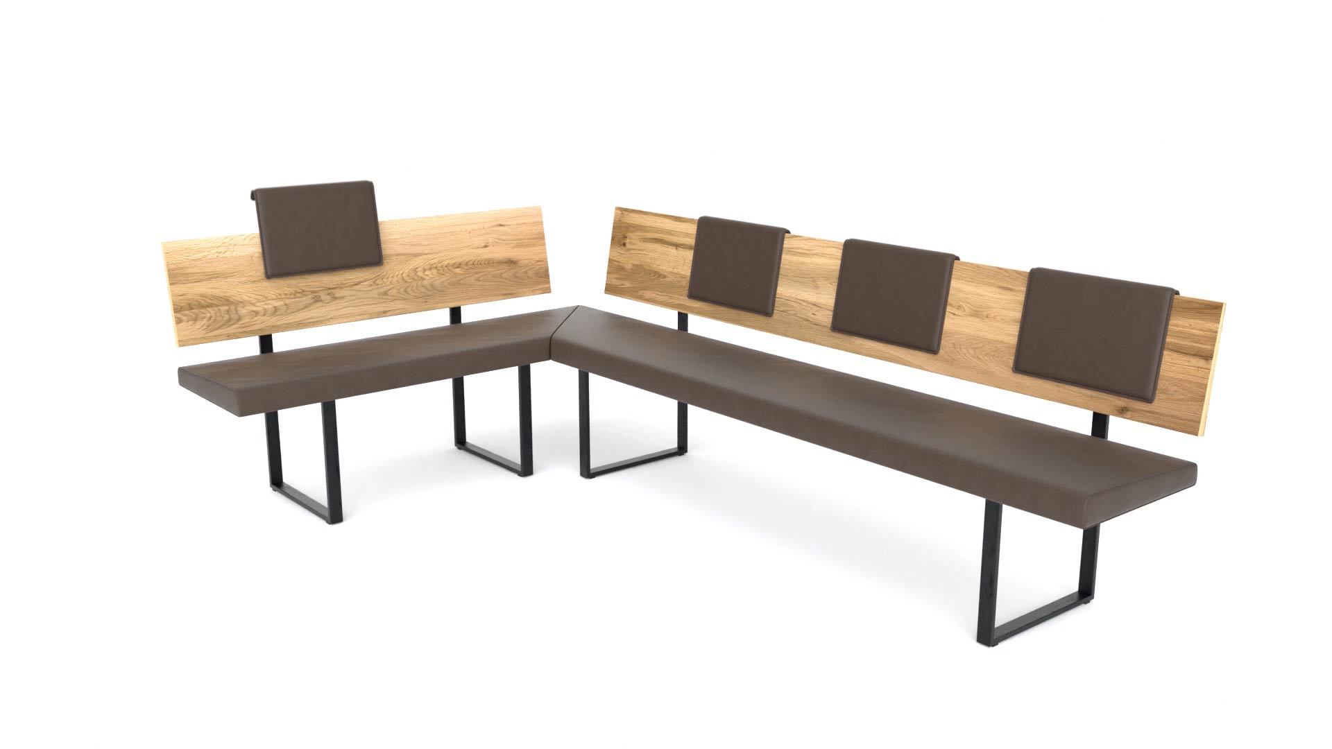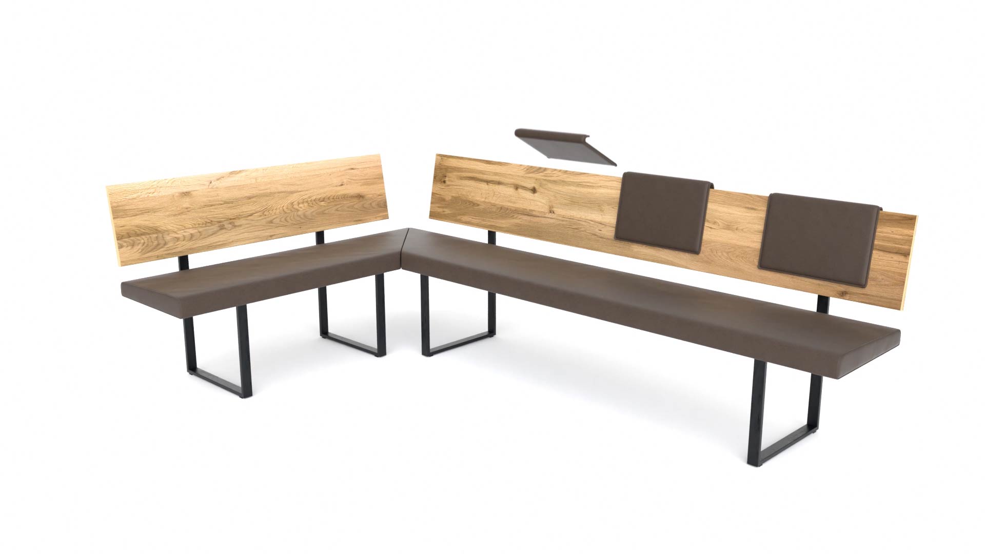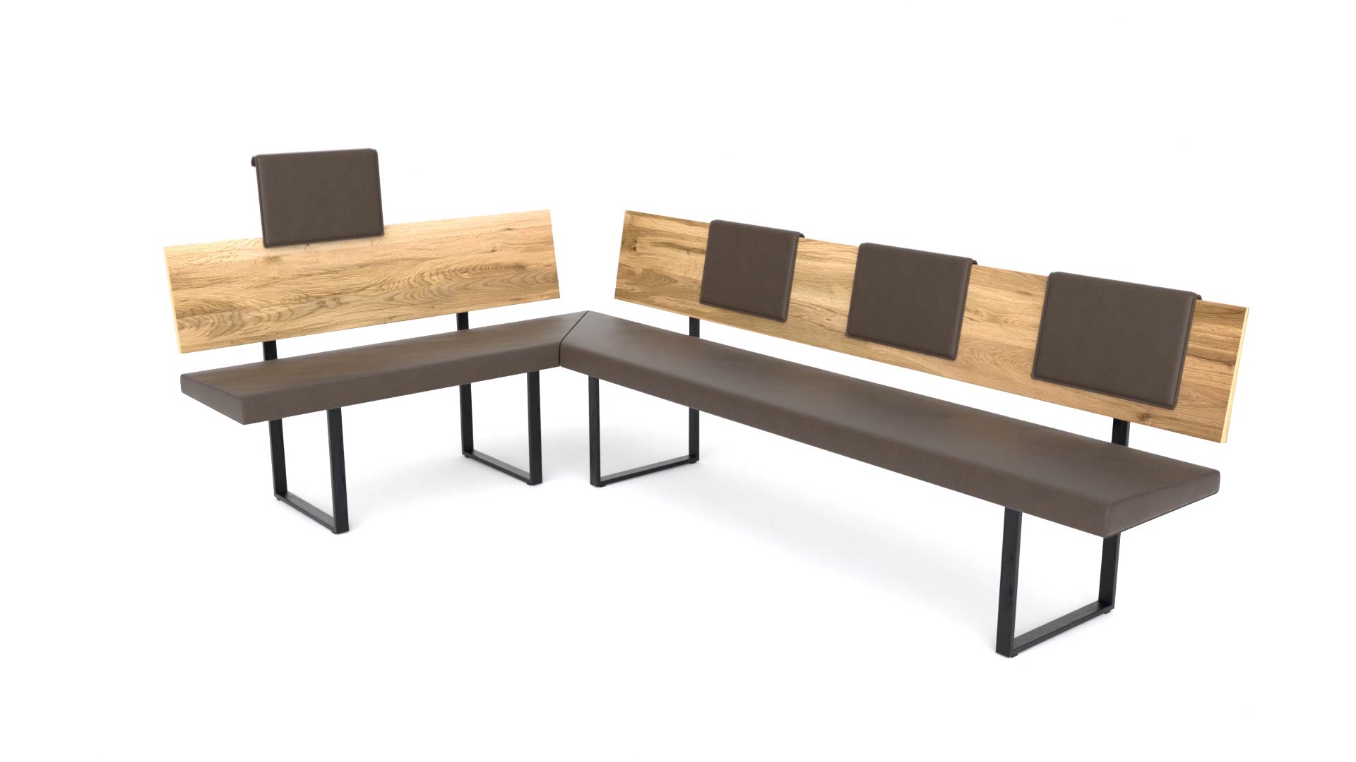 Mit dem Bankprogramm Calgary 4.0 können Sie sich alle Wünsche erfüllen. Zentimetergenau nach Ihren Vorgaben fertigen wir Ihnen diese Bank in Holz oder Polsterausführung. Die Ecke können Sie offen oder geschlossen gestalten und wahlweise mit einem praktischen Eckbrett versehen. Sogar eine Truhe bauen wir Ihnen am Sitz ein. Alpenländisch wird die Ausstrahlung mit Holzteilen, welche eine Baumkante aufweisen. Sie haben die Wahl!