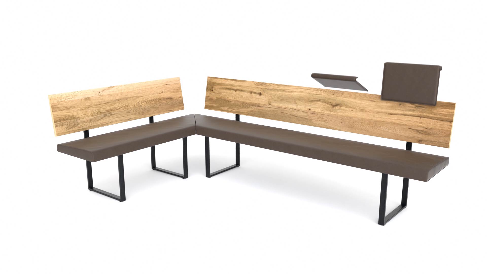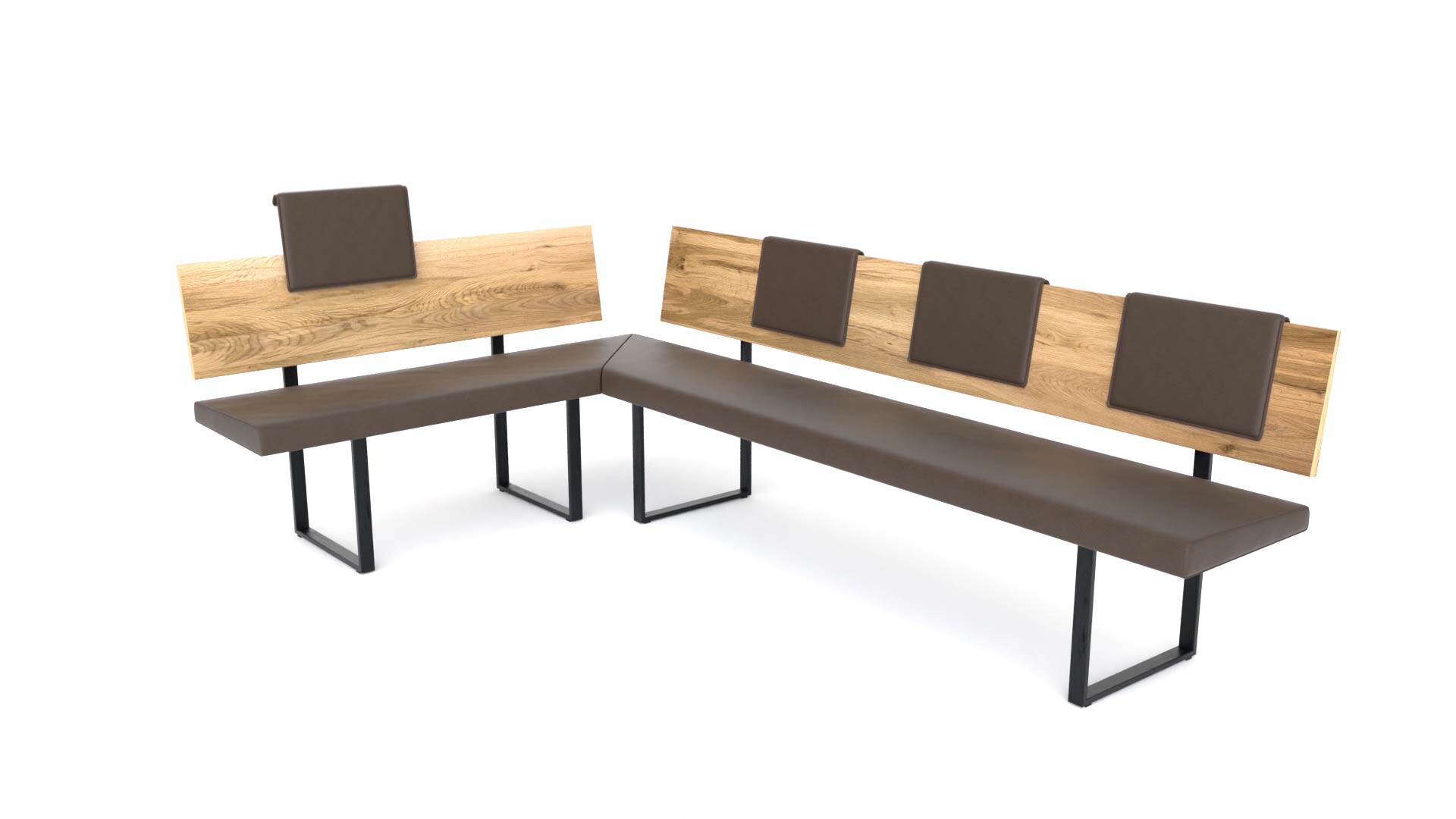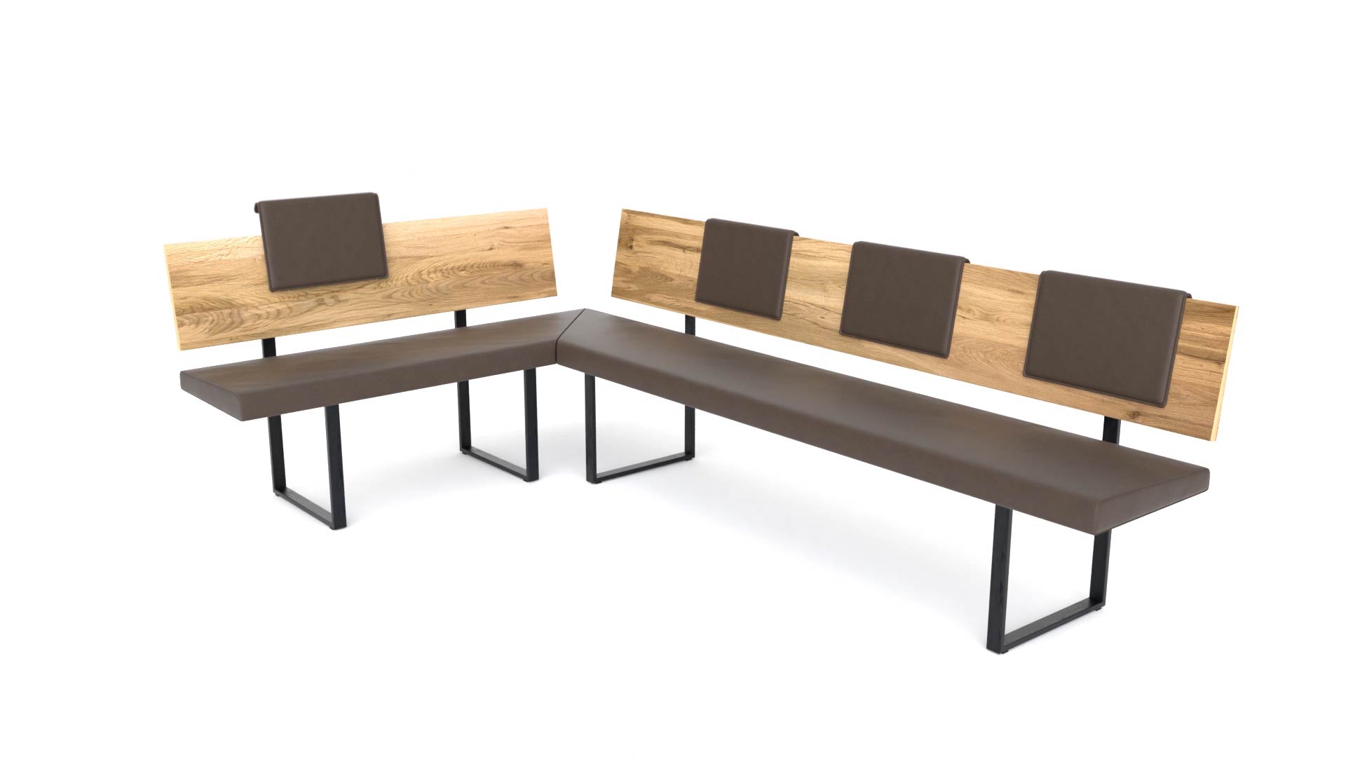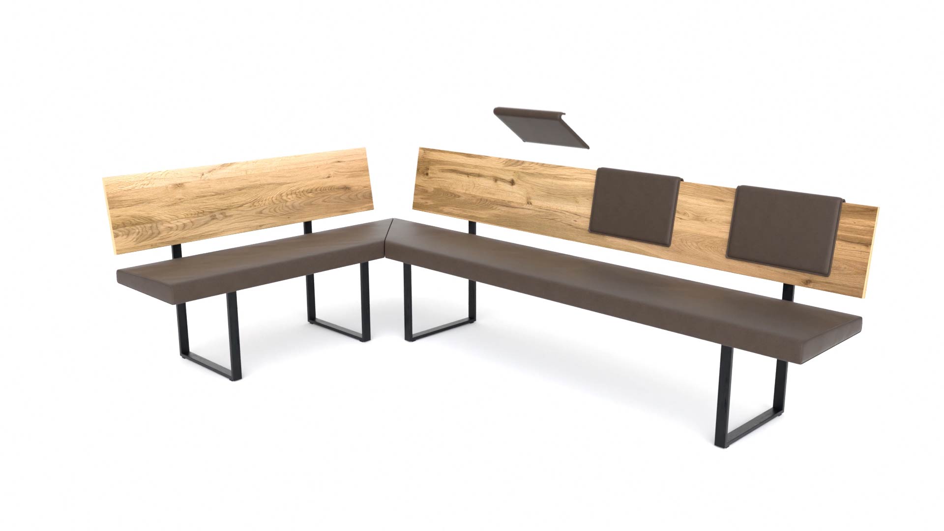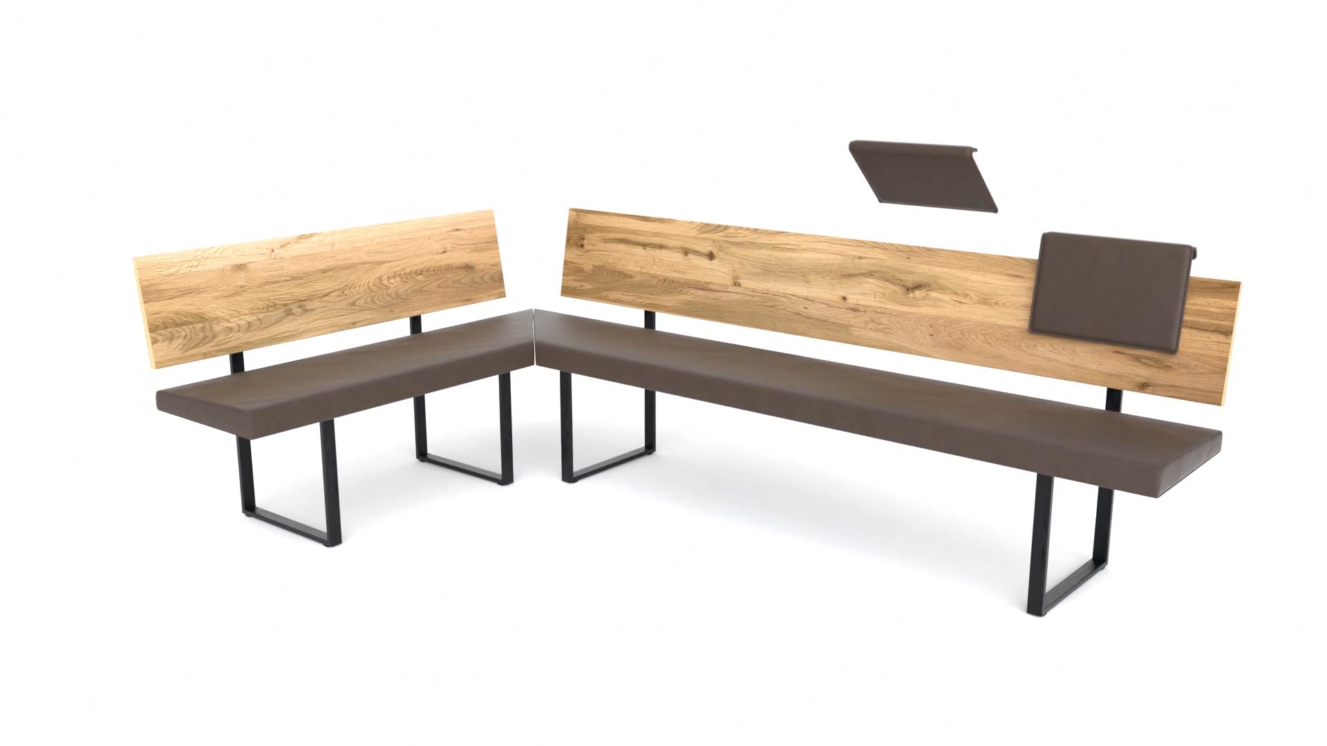 Mit dem Bankprogramm Calgary 4.0 können Sie sich alle Wünsche erfüllen. Zentimetergenau nach Ihren Vorgaben fertigen wir Ihnen diese Bank in Holz oder Polsterausführung. Die Ecke können Sie offen oder geschlossen gestalten und wahlweise mit einem praktischen Eckbrett versehen. Sogar eine Truhe bauen wir Ihnen am Sitz ein. Alpenländisch wird die Ausstrahlung mit Holzteilen, welche eine Baumkante aufweisen. Sie haben die Wahl!
