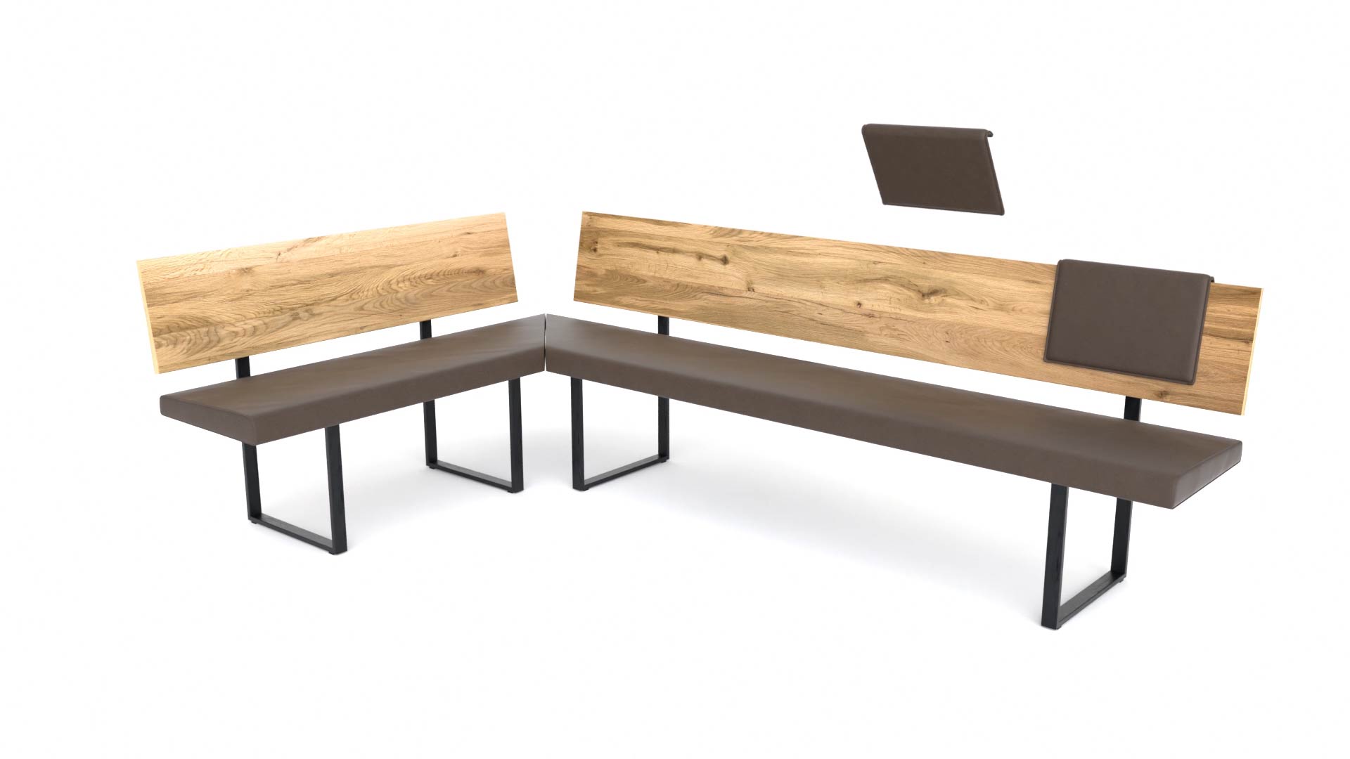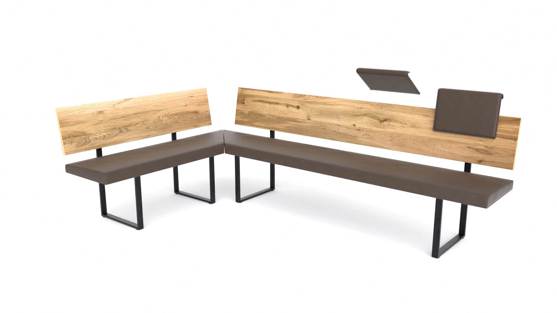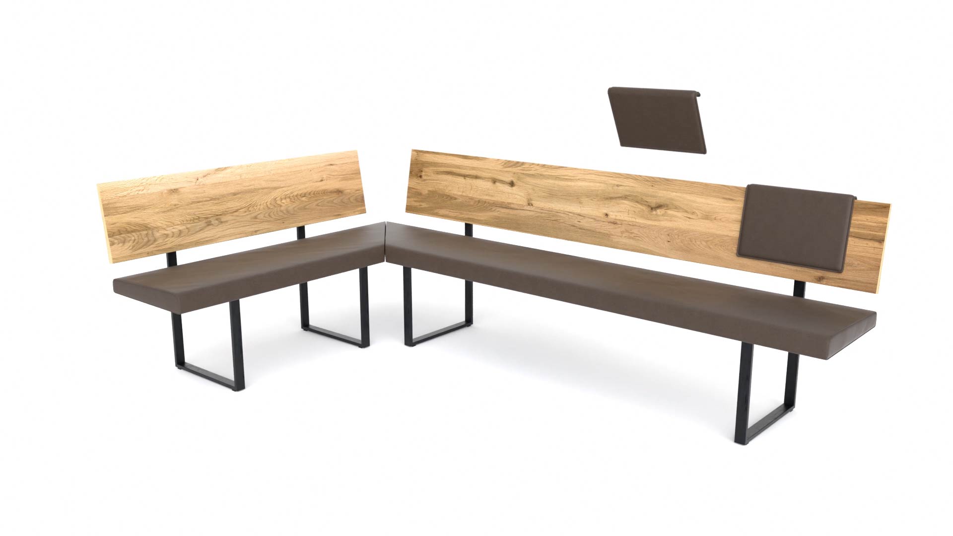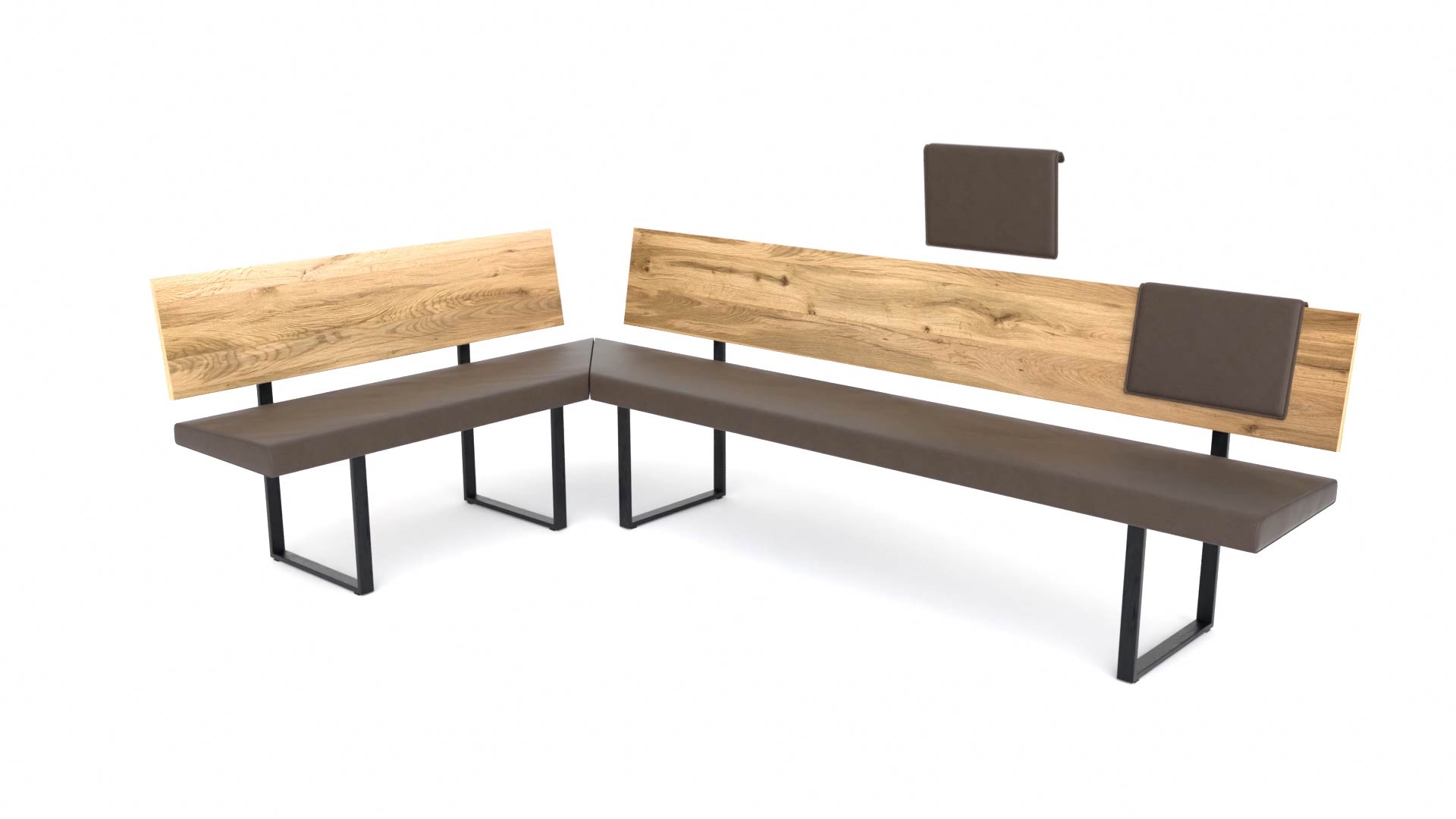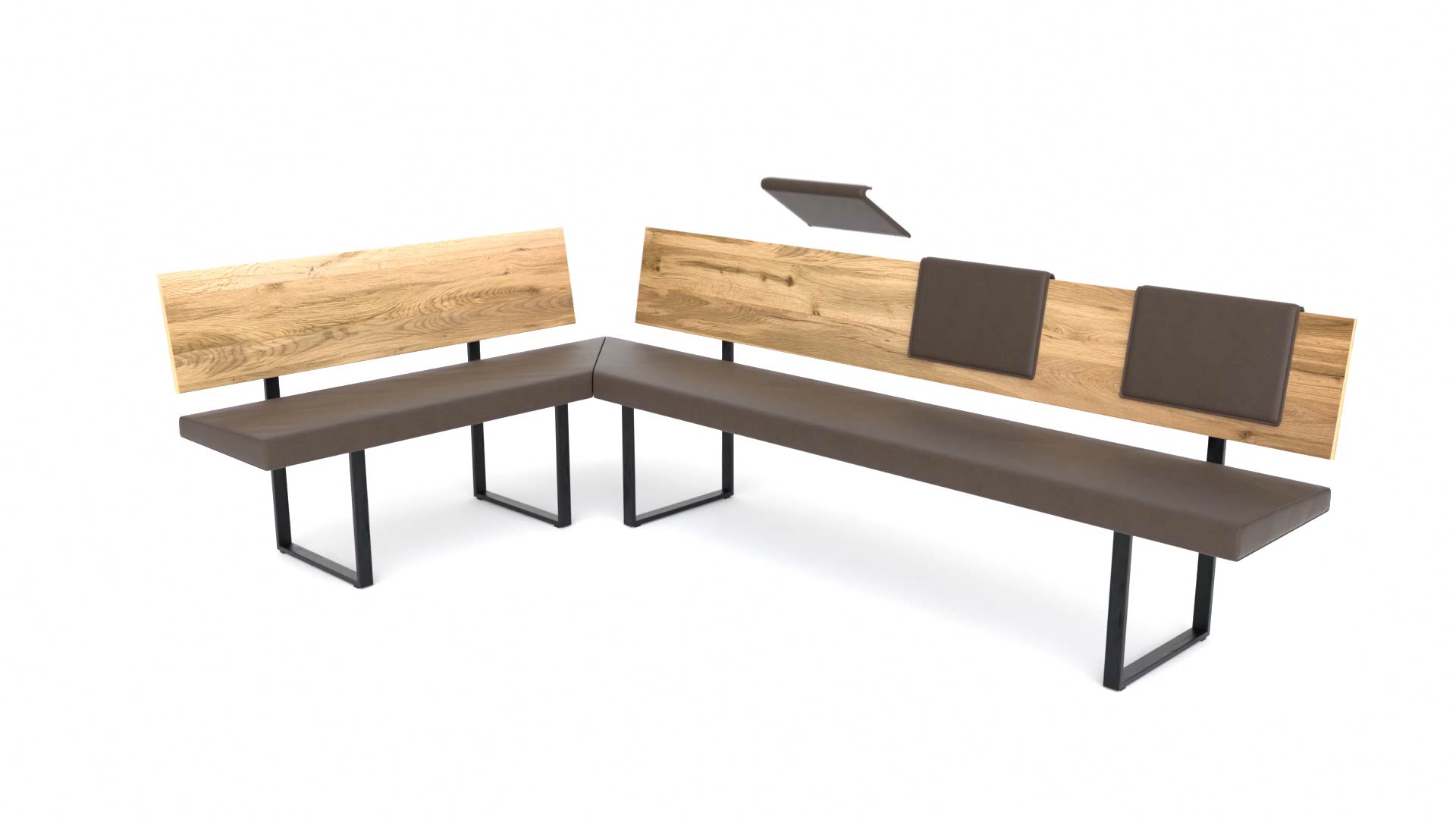 Mit dem Bankprogramm Calgary 4.0 können Sie sich alle Wünsche erfüllen. Zentimetergenau nach Ihren Vorgaben fertigen wir Ihnen diese Bank in Holz oder Polsterausführung. Die Ecke können Sie offen oder geschlossen gestalten und wahlweise mit einem praktischen Eckbrett versehen. Sogar eine Truhe bauen wir Ihnen am Sitz ein. Alpenländisch wird die Ausstrahlung mit Holzteilen, welche eine Baumkante aufweisen. Sie haben die Wahl!