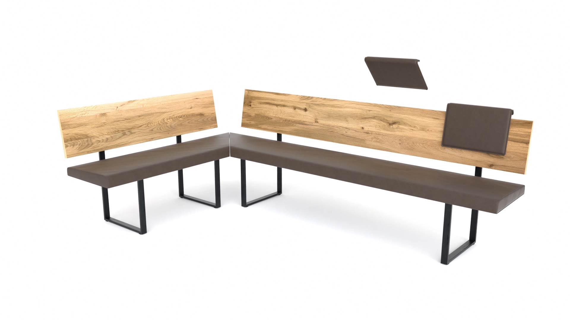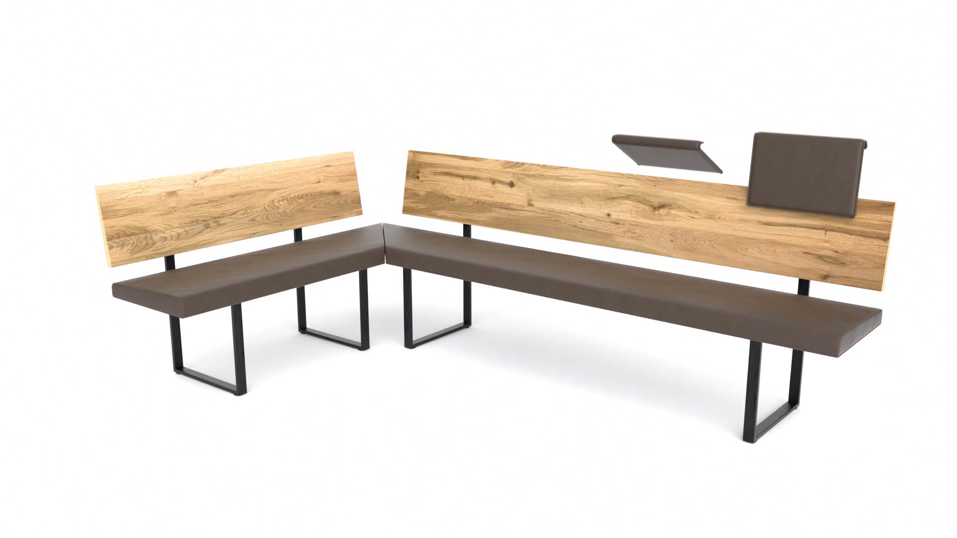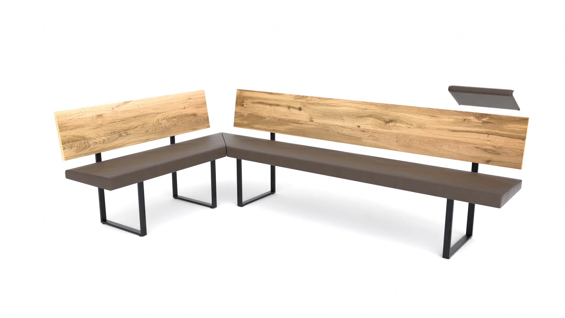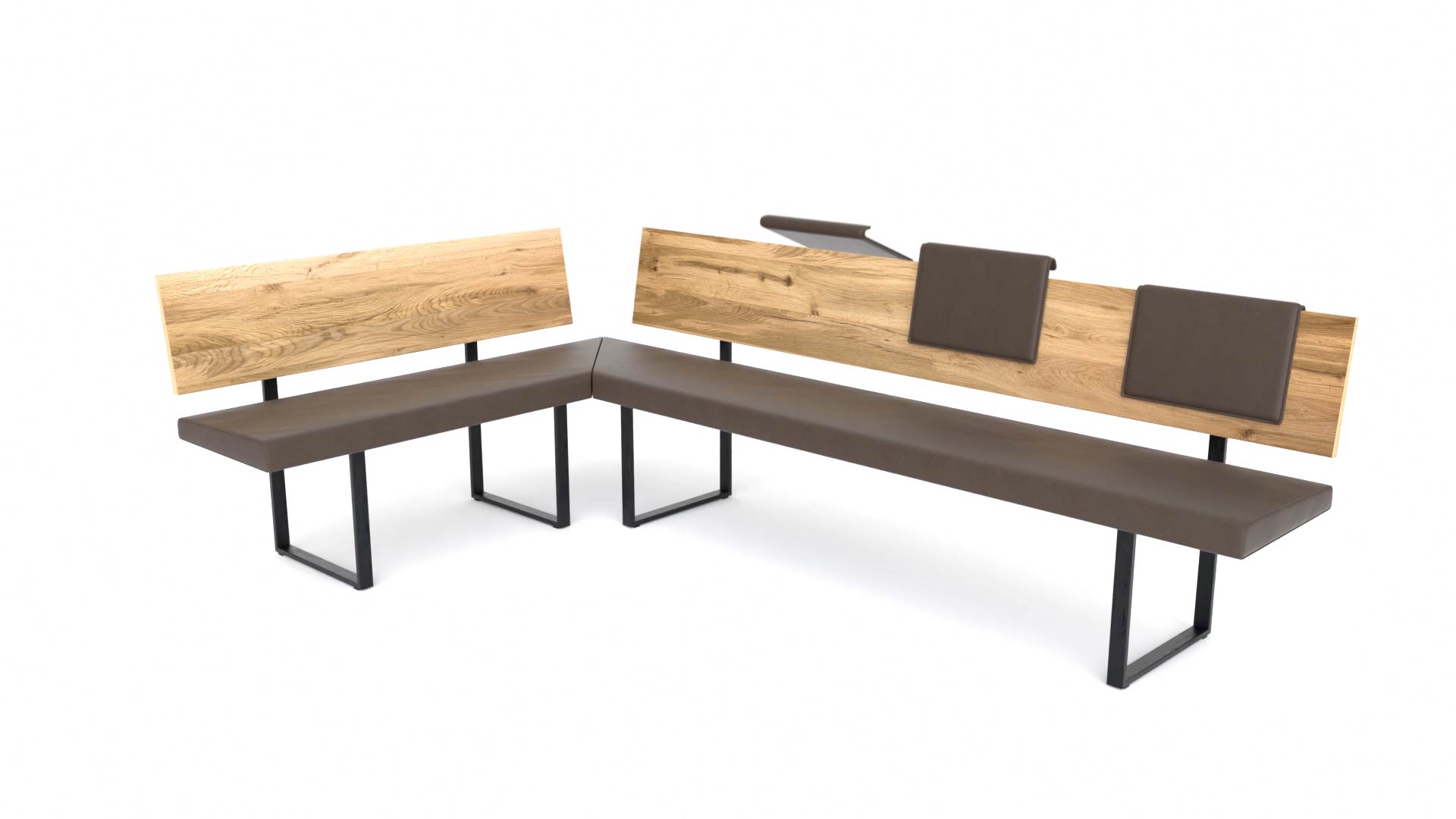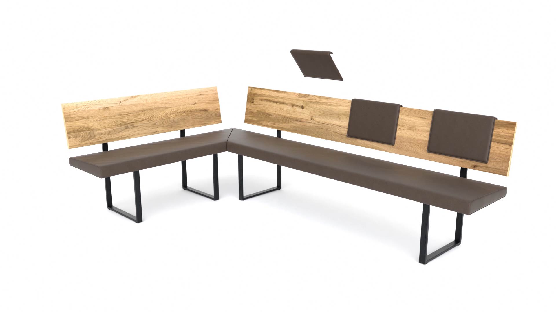 Mit dem Bankprogramm Calgary 4.0 können Sie sich alle Wünsche erfüllen. Zentimetergenau nach Ihren Vorgaben fertigen wir Ihnen diese Bank in Holz oder Polsterausführung. Die Ecke können Sie offen oder geschlossen gestalten und wahlweise mit einem praktischen Eckbrett versehen. Sogar eine Truhe bauen wir Ihnen am Sitz ein. Alpenländisch wird die Ausstrahlung mit Holzteilen, welche eine Baumkante aufweisen. Sie haben die Wahl!
