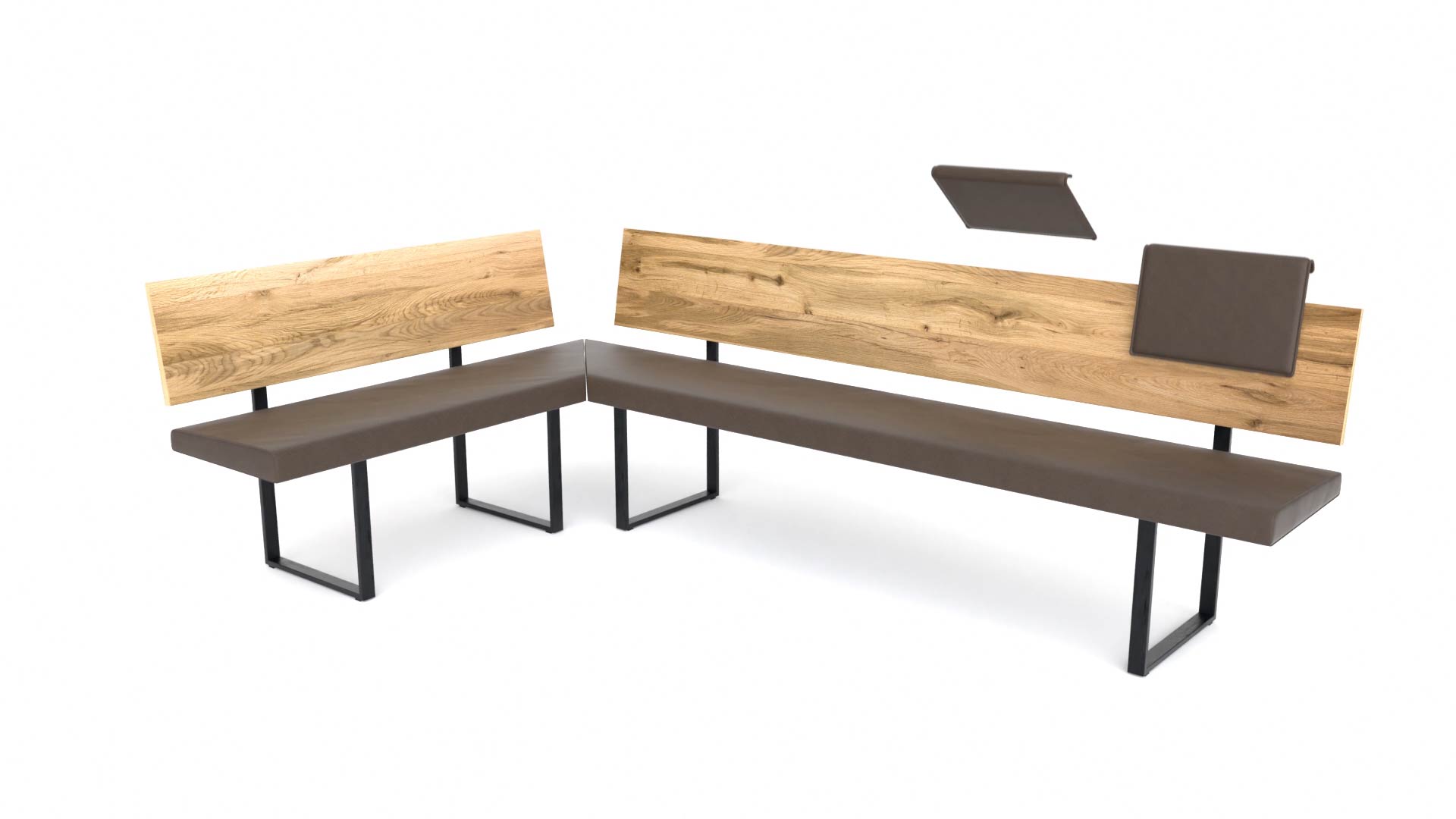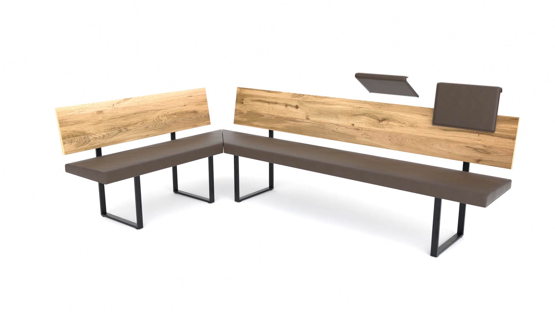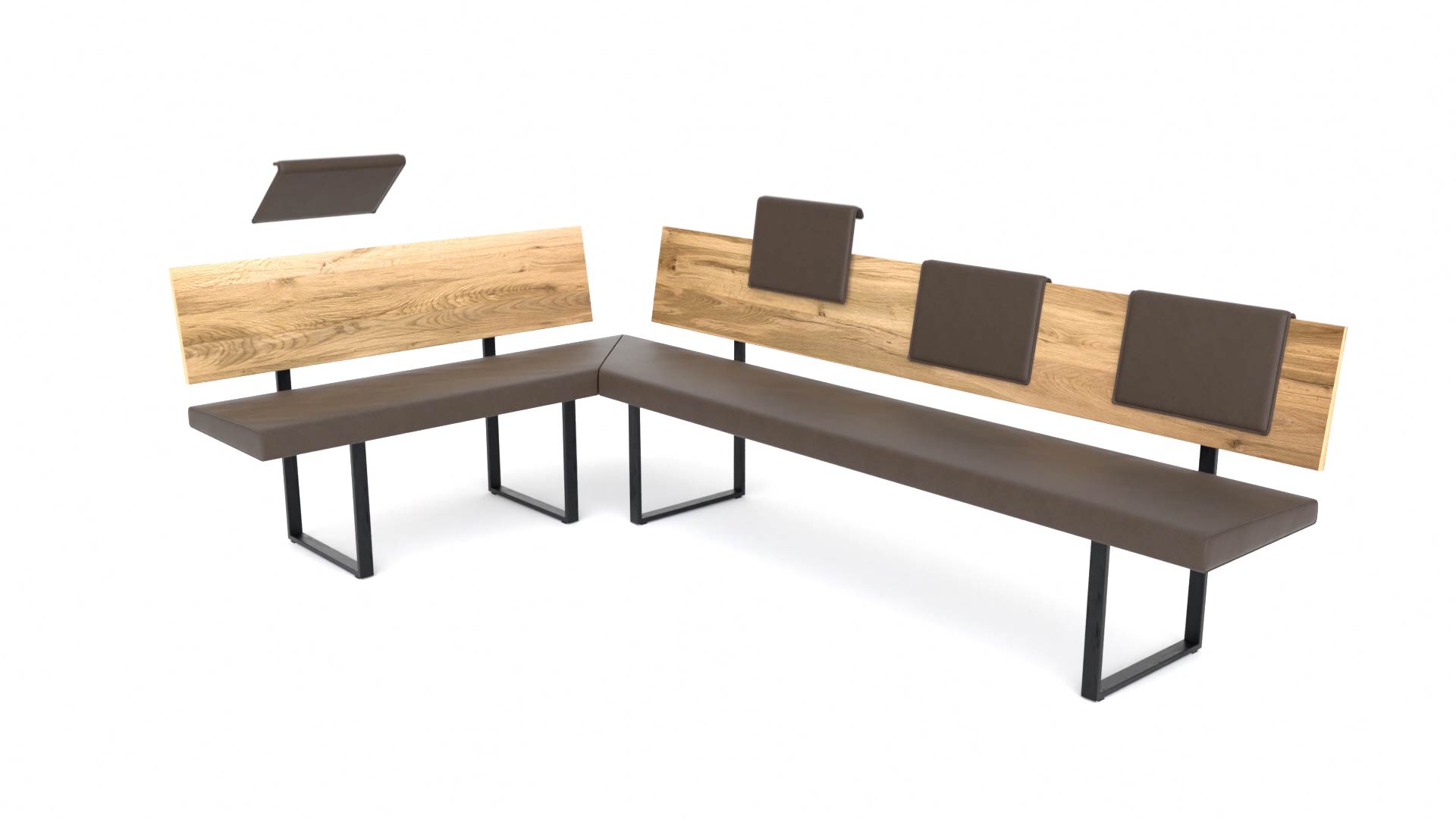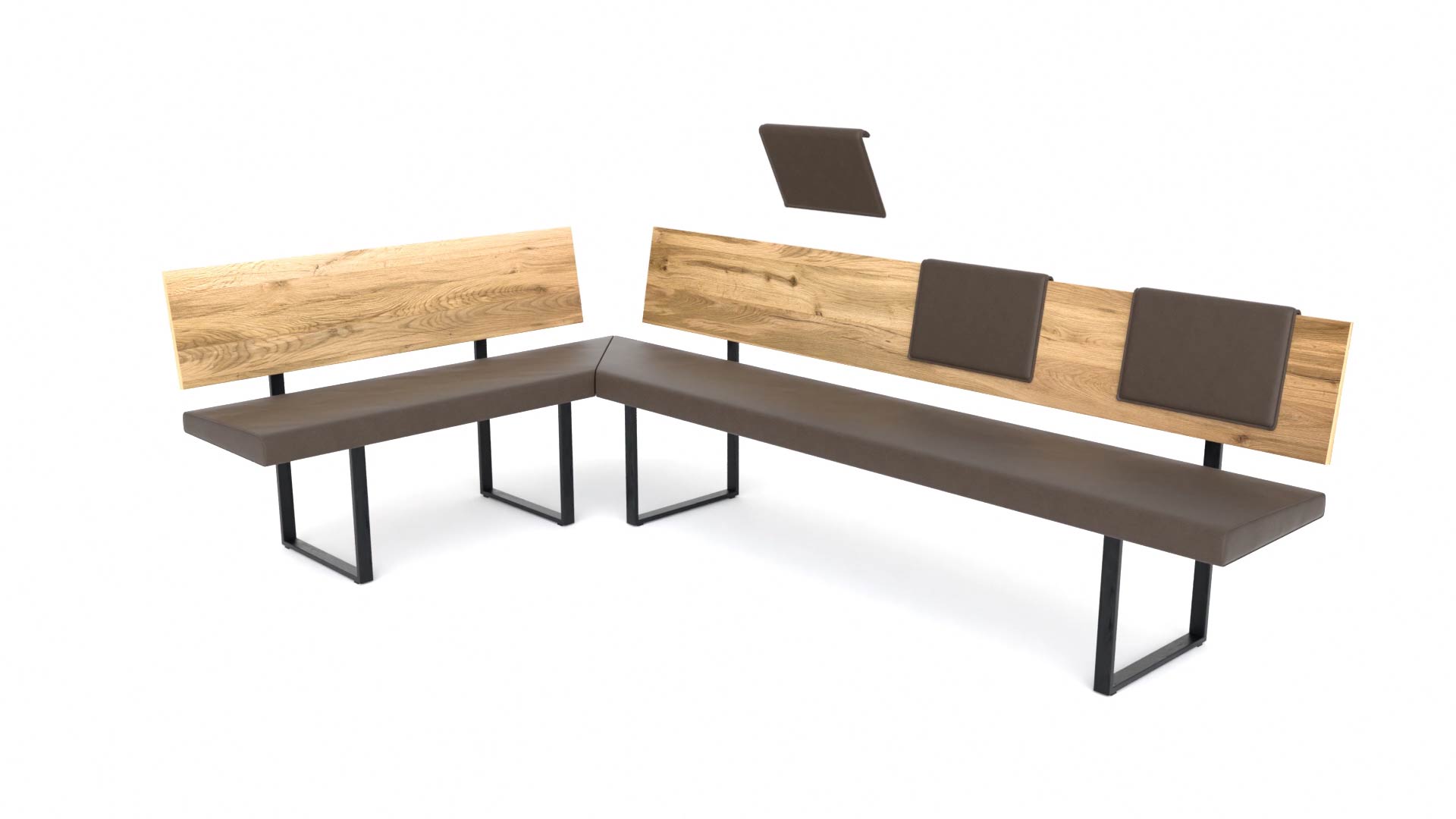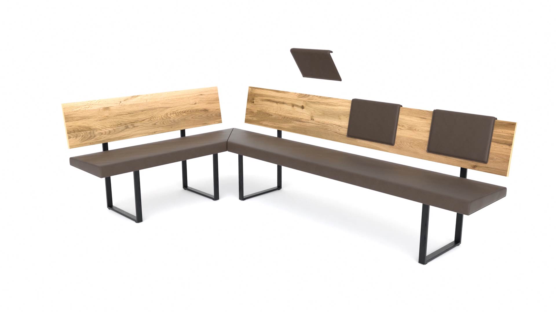 Mit dem Bankprogramm Calgary 4.0 können Sie sich alle Wünsche erfüllen. Zentimetergenau nach Ihren Vorgaben fertigen wir Ihnen diese Bank in Holz oder Polsterausführung. Die Ecke können Sie offen oder geschlossen gestalten und wahlweise mit einem praktischen Eckbrett versehen. Sogar eine Truhe bauen wir Ihnen am Sitz ein. Alpenländisch wird die Ausstrahlung mit Holzteilen, welche eine Baumkante aufweisen. Sie haben die Wahl!