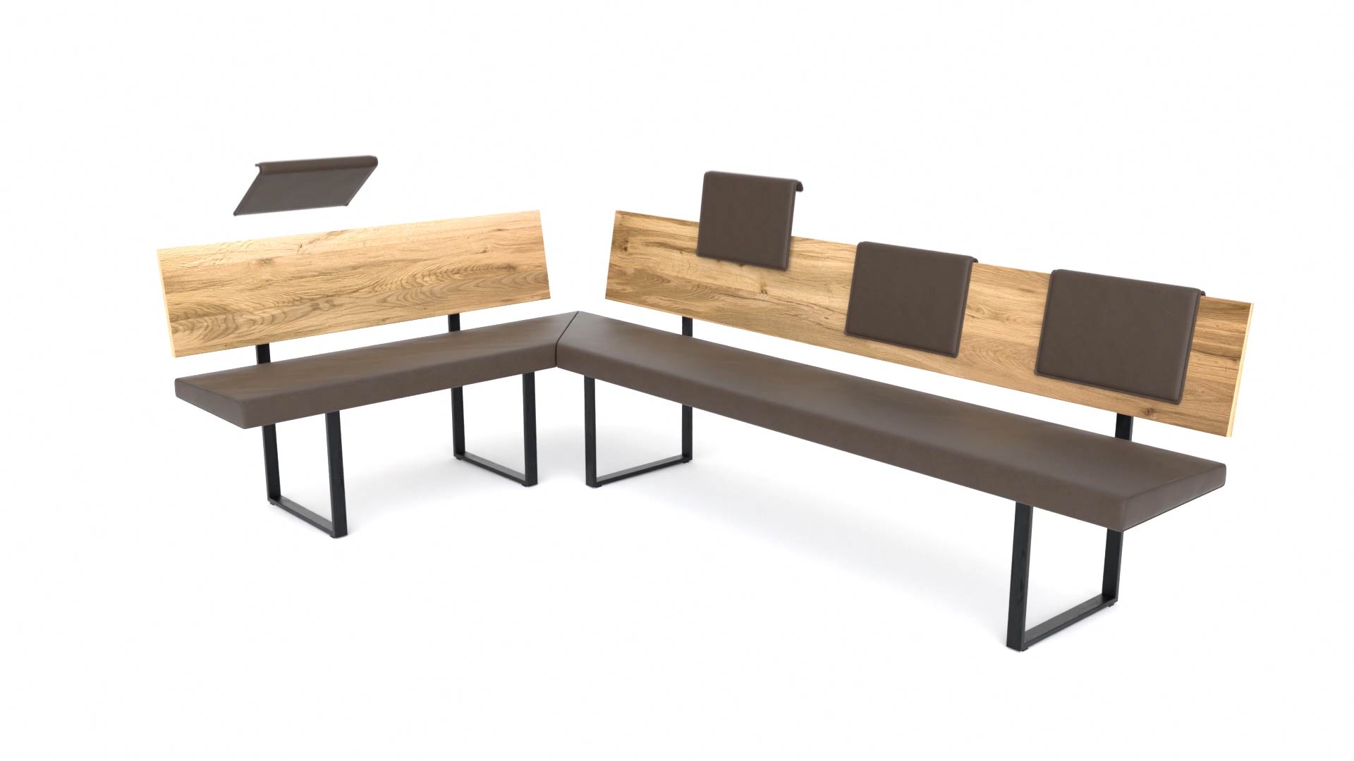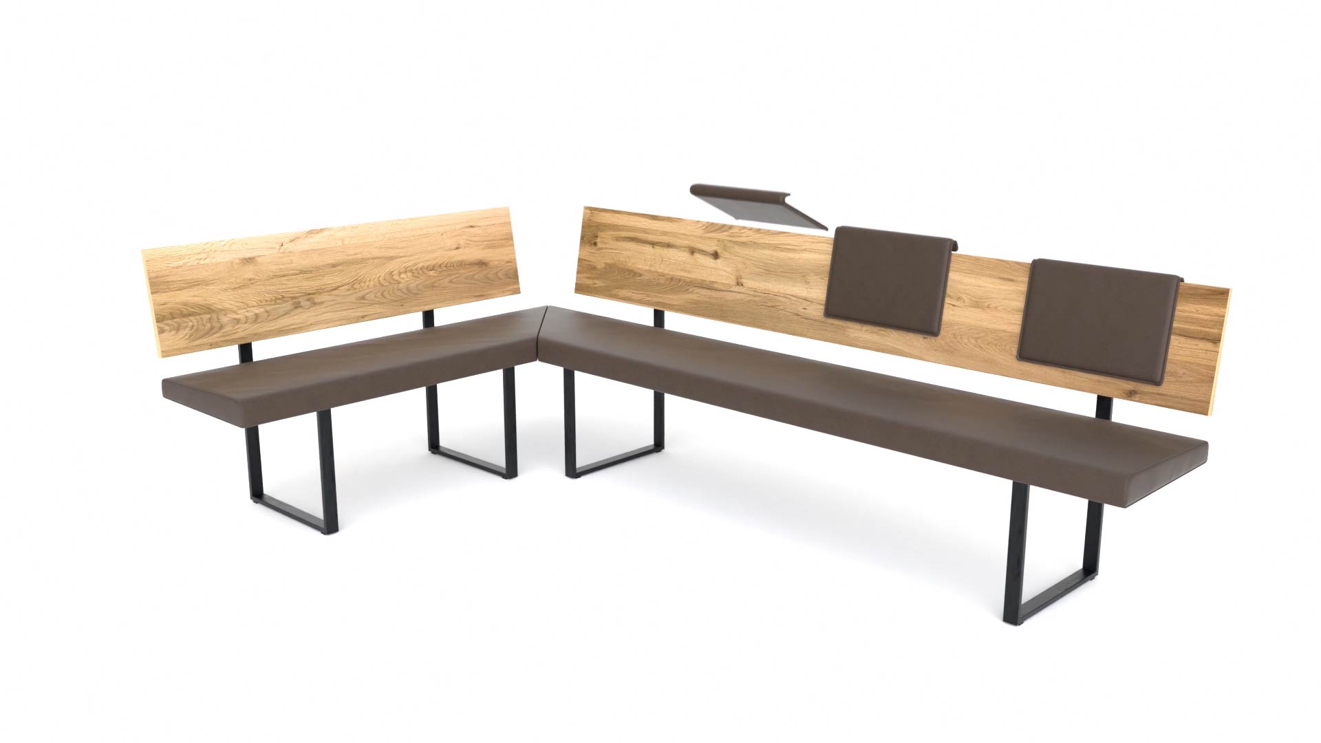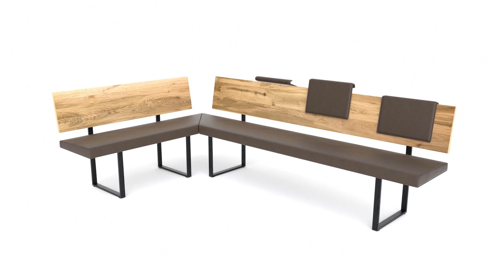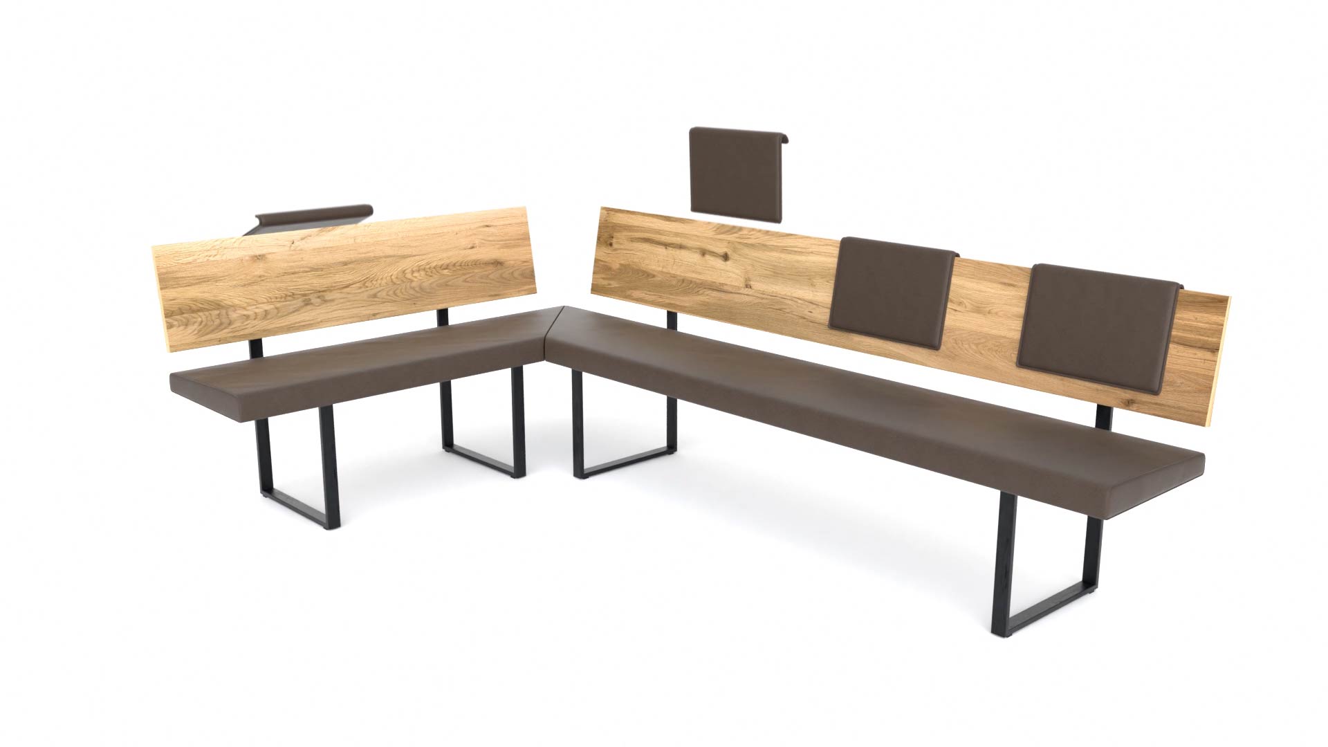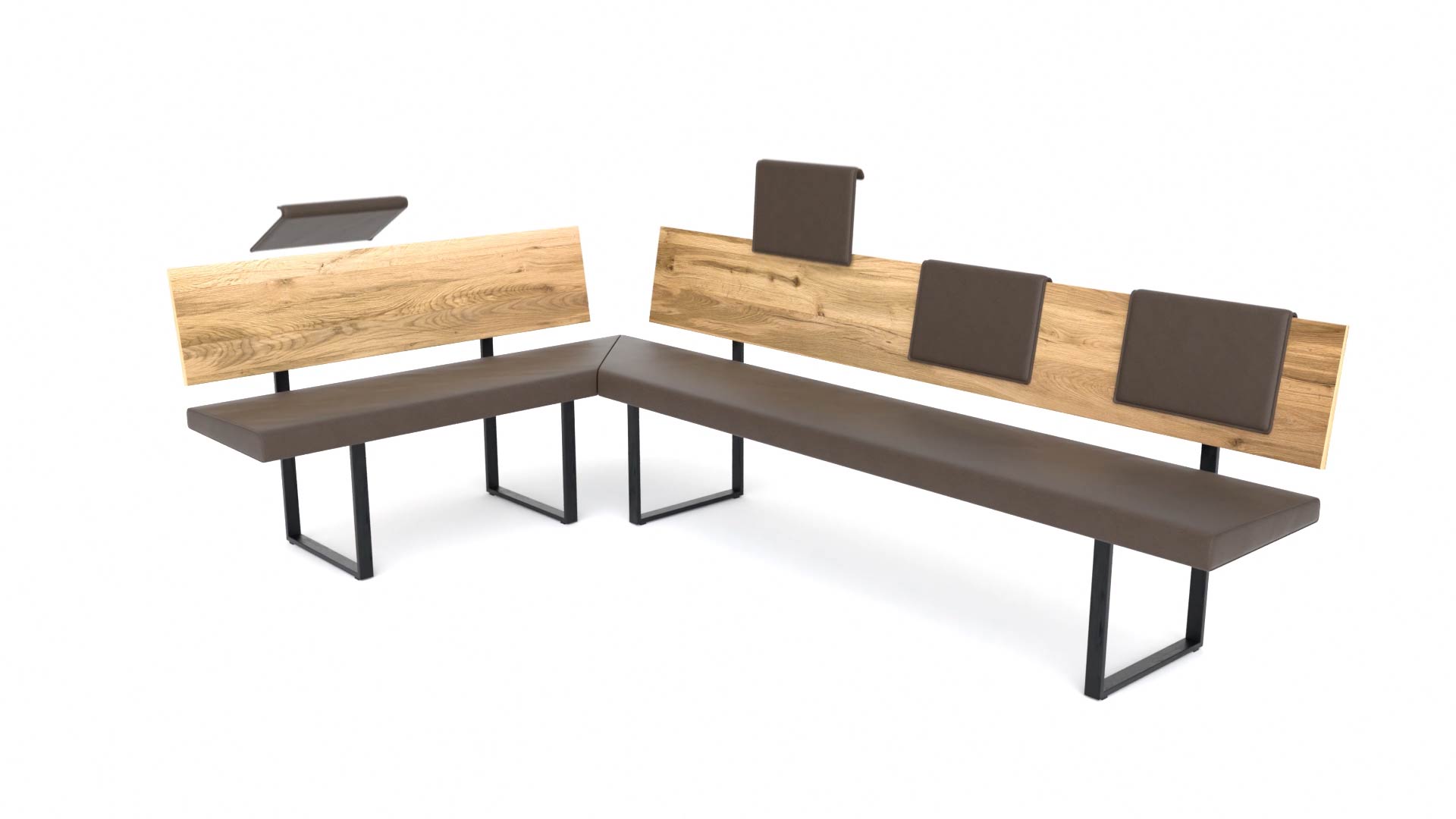 Mit dem Bankprogramm Calgary 4.0 können Sie sich alle Wünsche erfüllen. Zentimetergenau nach Ihren Vorgaben fertigen wir Ihnen diese Bank in Holz oder Polsterausführung. Die Ecke können Sie offen oder geschlossen gestalten und wahlweise mit einem praktischen Eckbrett versehen. Sogar eine Truhe bauen wir Ihnen am Sitz ein. Alpenländisch wird die Ausstrahlung mit Holzteilen, welche eine Baumkante aufweisen. Sie haben die Wahl!