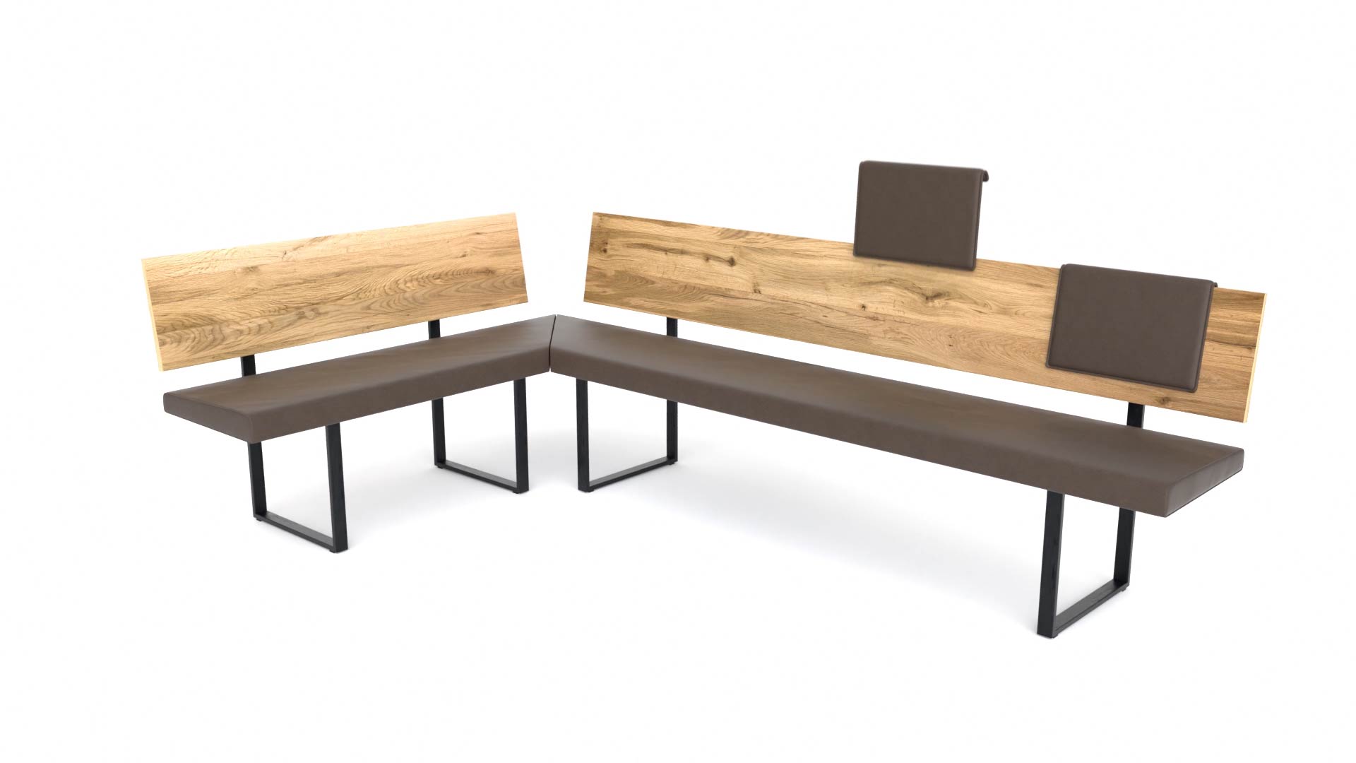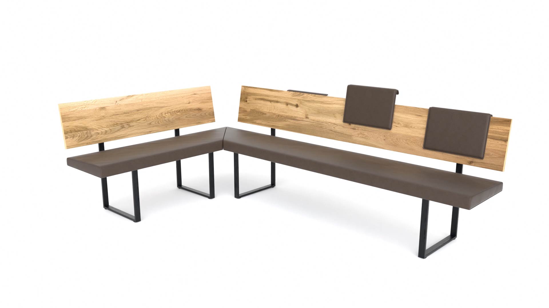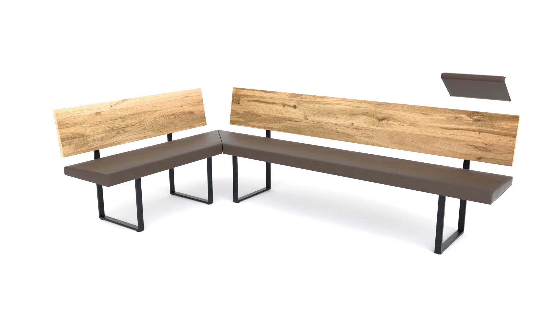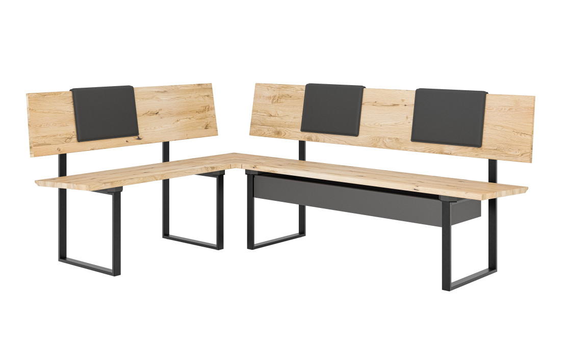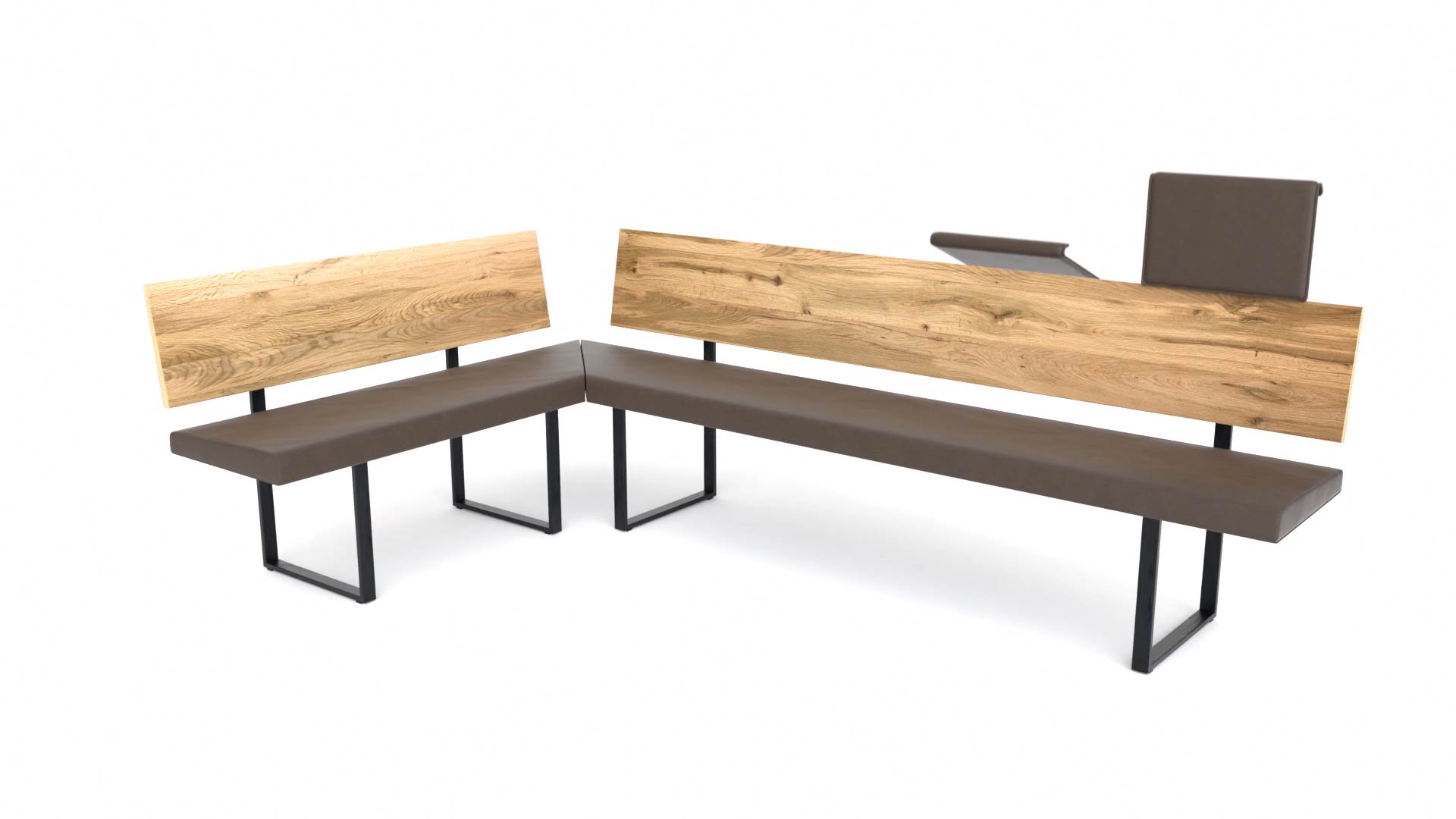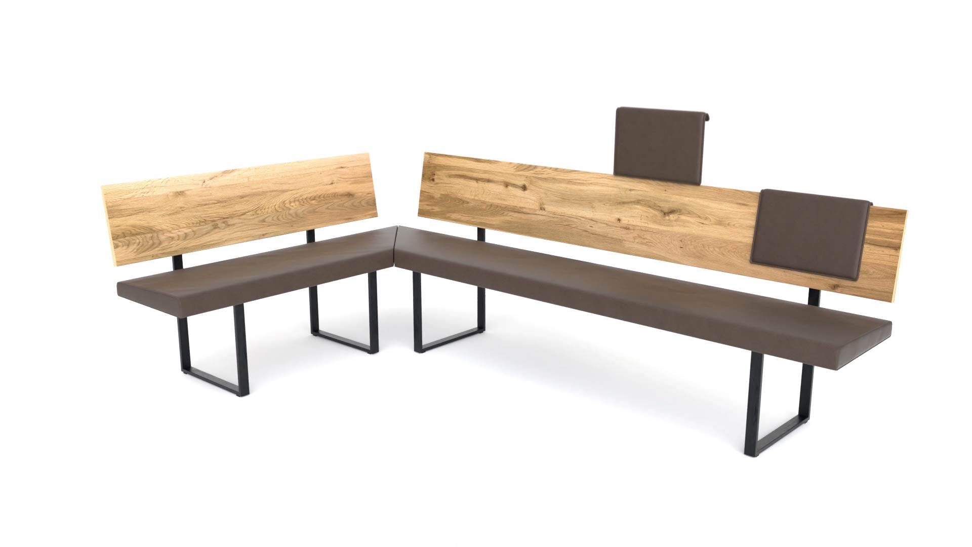 Mit dem Bankprogramm Calgary 4.0 können Sie sich alle Wünsche erfüllen. Zentimetergenau nach Ihren Vorgaben fertigen wir Ihnen diese Bank in Holz oder Polsterausführung. Die Ecke können Sie offen oder geschlossen gestalten und wahlweise mit einem praktischen Eckbrett versehen. Sogar eine Truhe bauen wir Ihnen am Sitz ein. Alpenländisch wird die Ausstrahlung mit Holzteilen, welche eine Baumkante aufweisen. Sie haben die Wahl!
