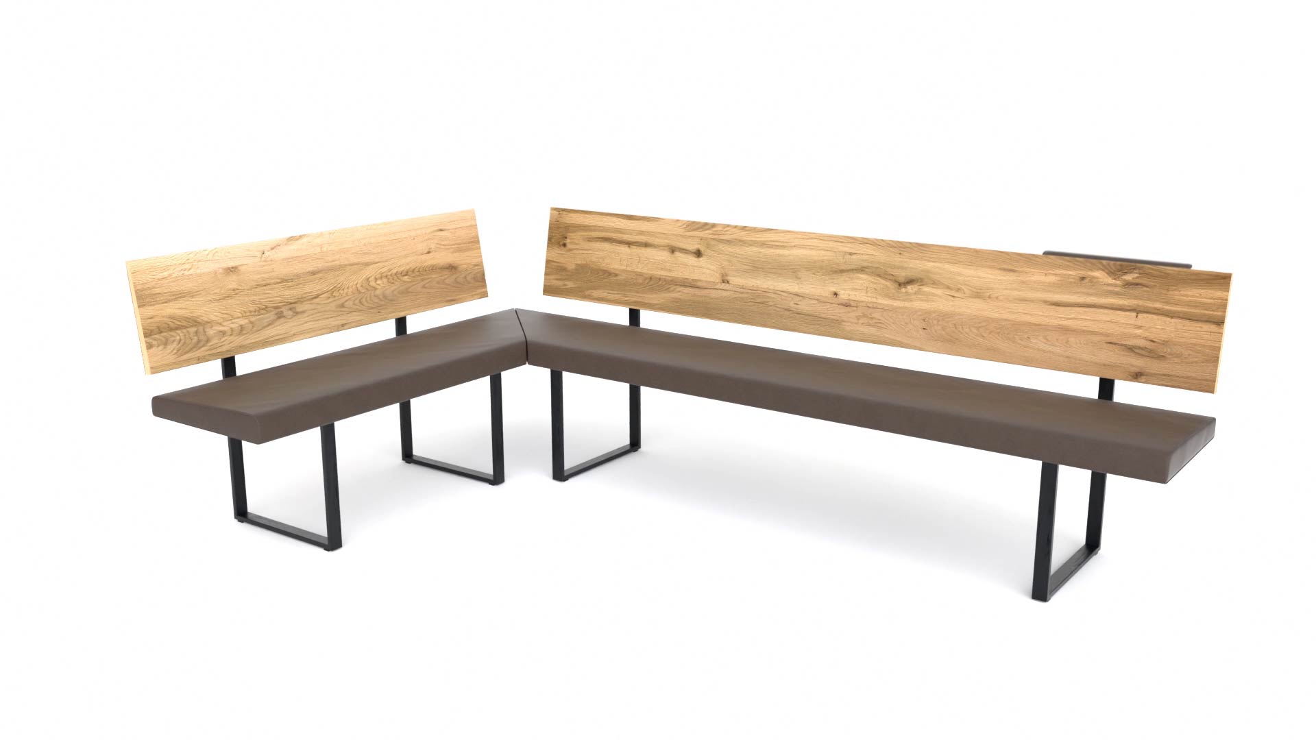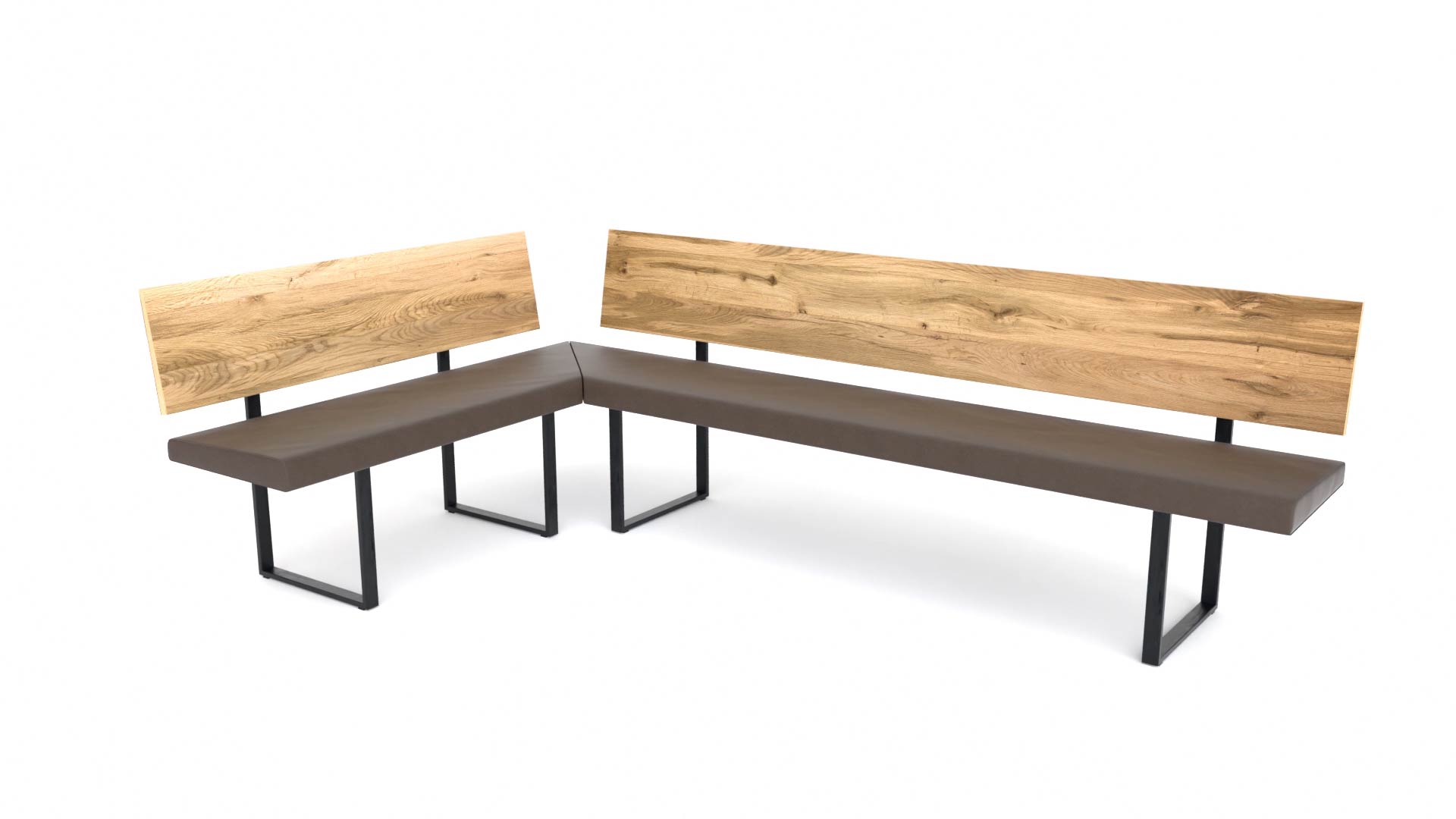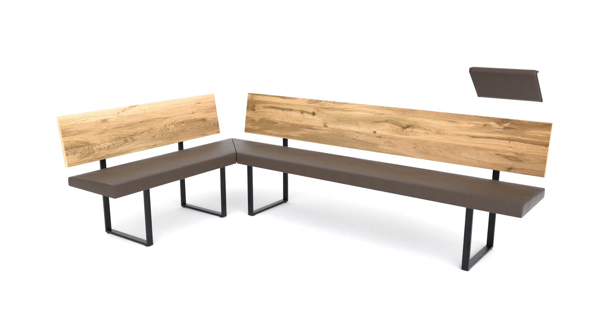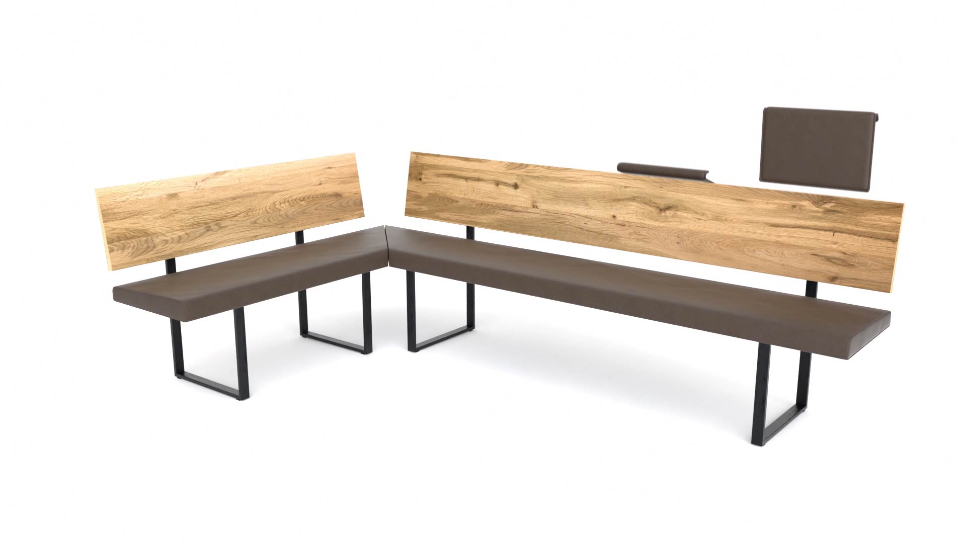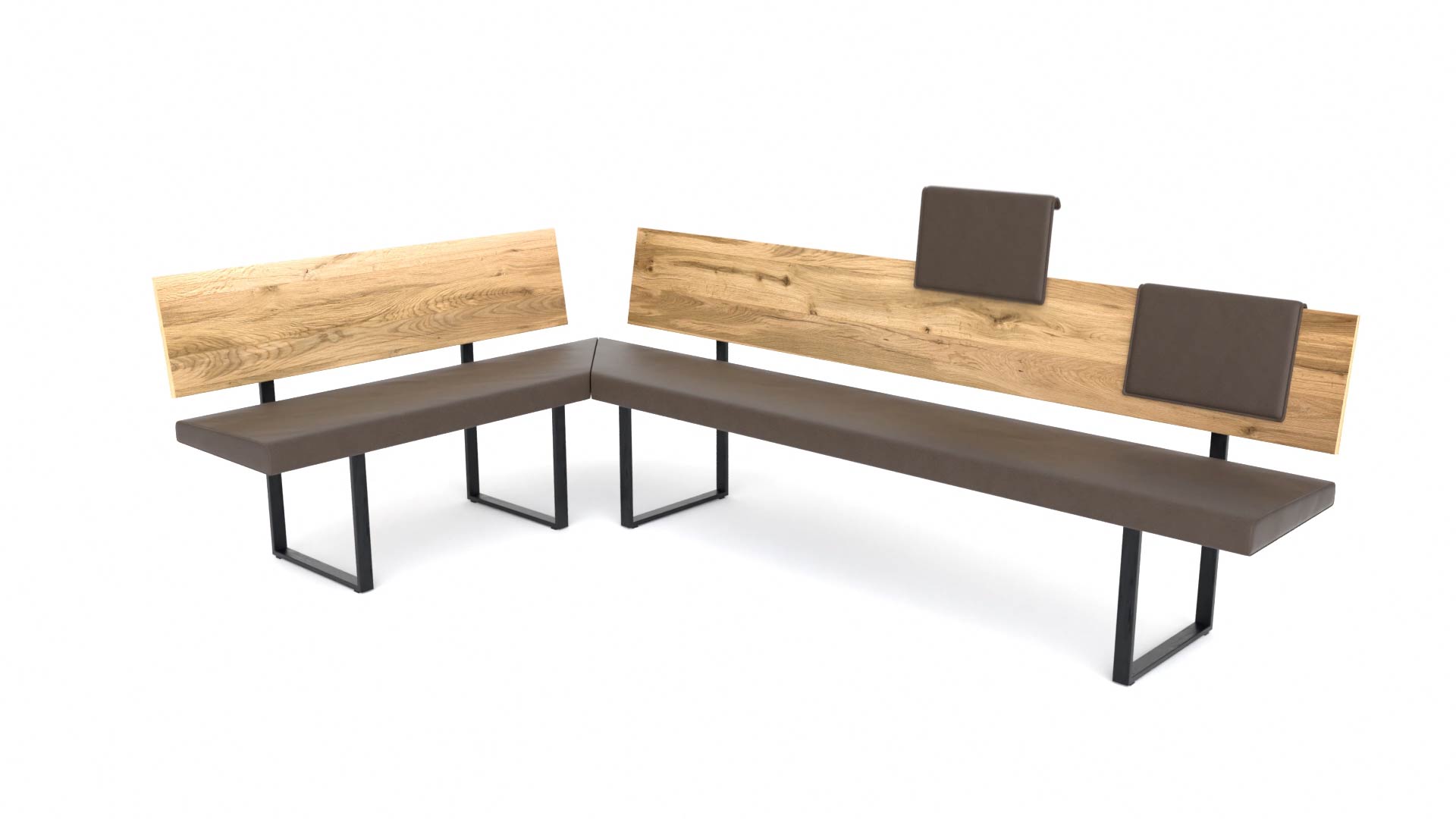 Mit dem Bankprogramm Calgary 4.0 können Sie sich alle Wünsche erfüllen. Zentimetergenau nach Ihren Vorgaben fertigen wir Ihnen diese Bank in Holz oder Polsterausführung. Die Ecke können Sie offen oder geschlossen gestalten und wahlweise mit einem praktischen Eckbrett versehen. Sogar eine Truhe bauen wir Ihnen am Sitz ein. Alpenländisch wird die Ausstrahlung mit Holzteilen, welche eine Baumkante aufweisen. Sie haben die Wahl!