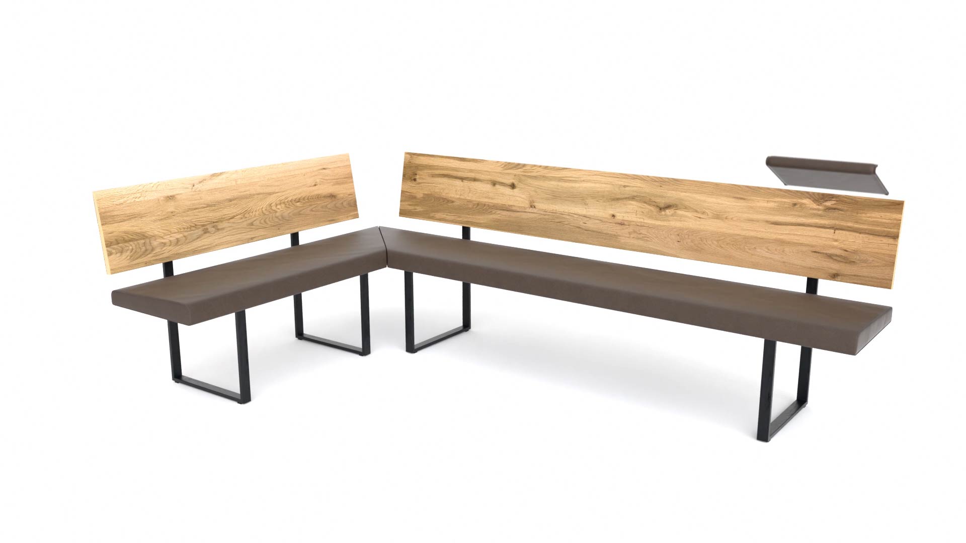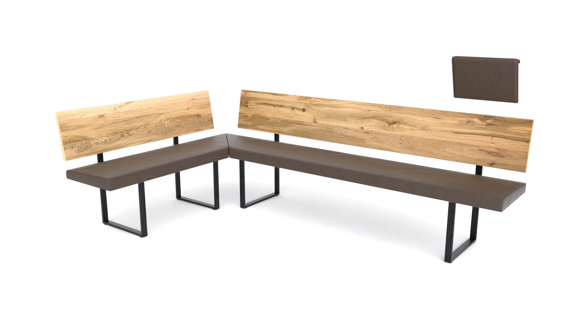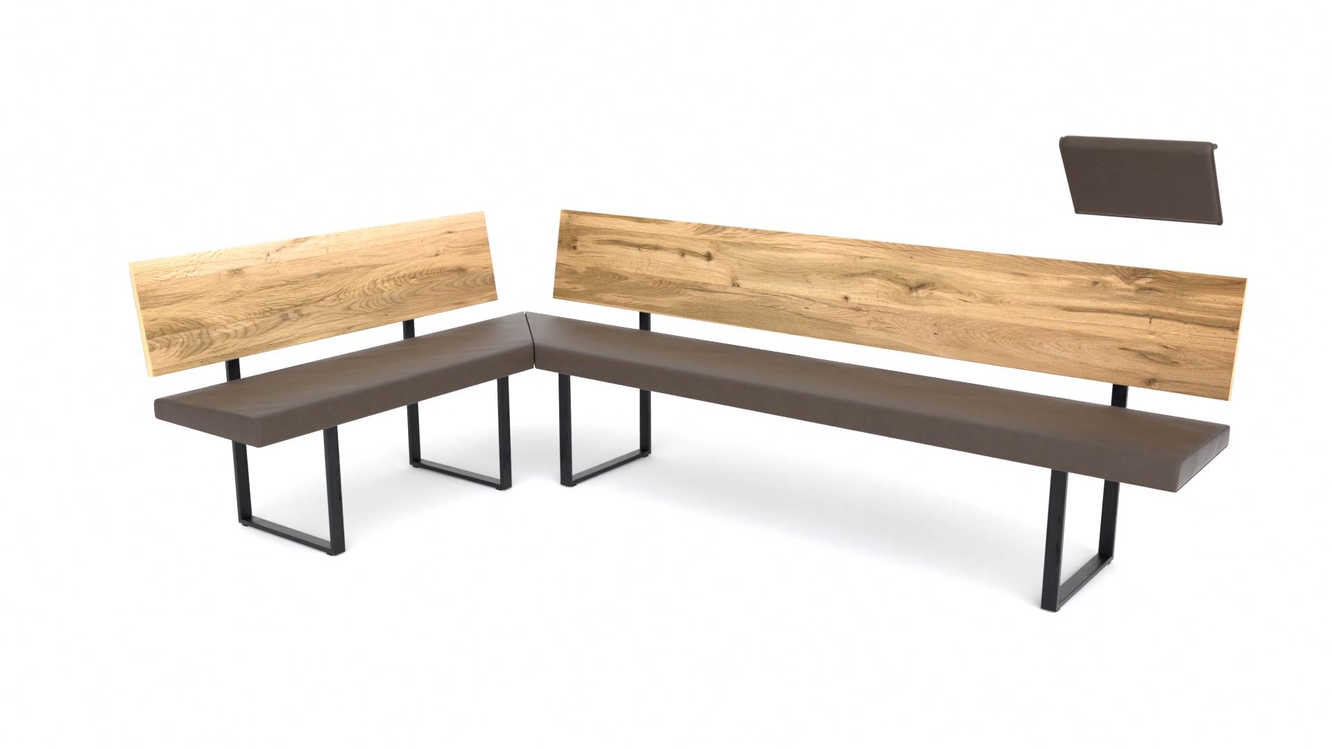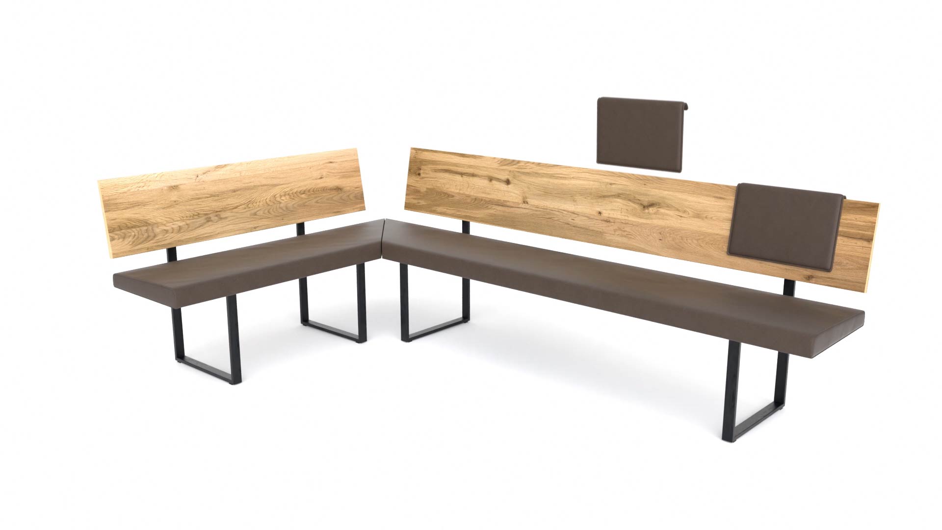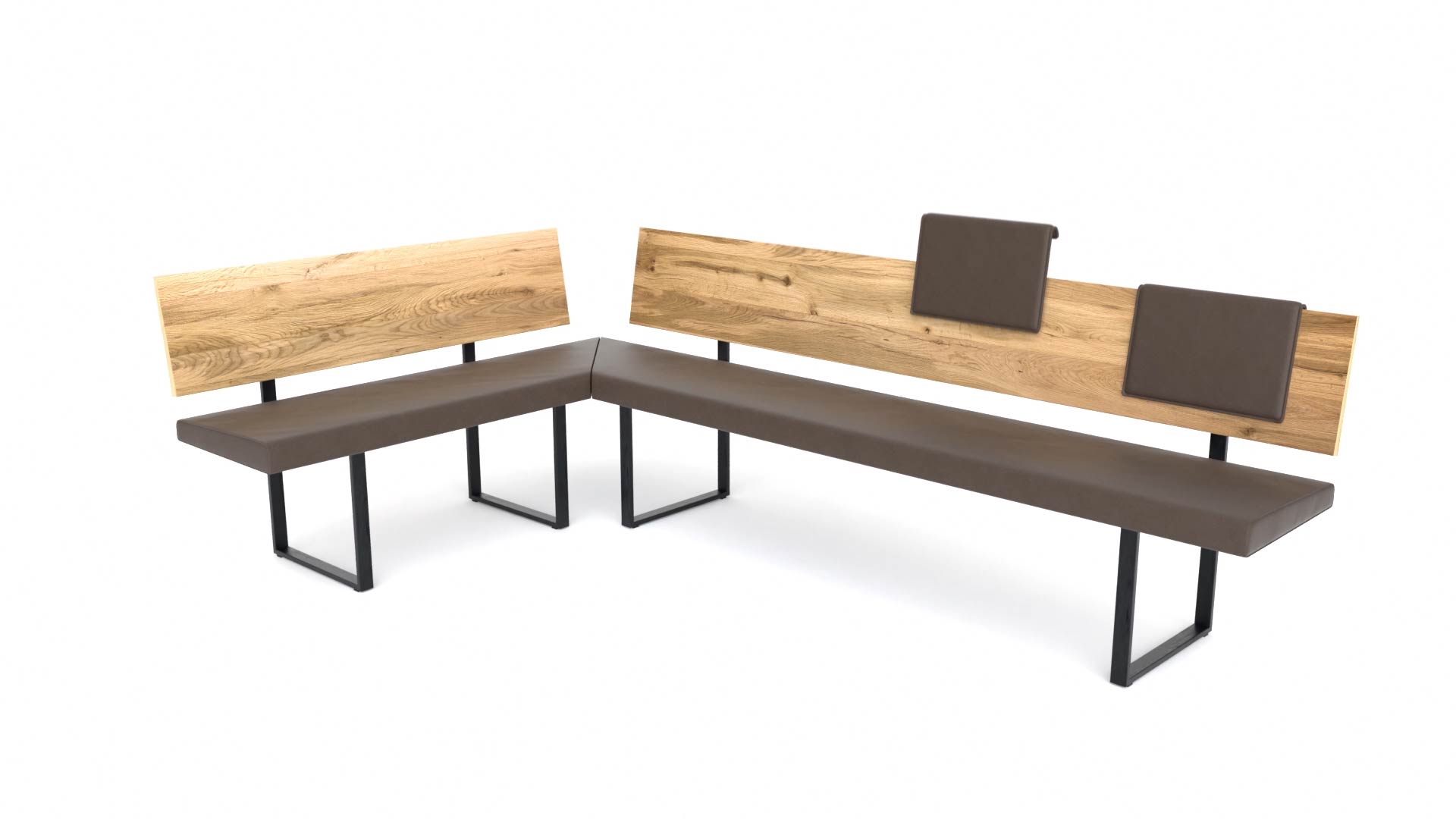Mit dem Bankprogramm Calgary 4.0 können Sie sich alle Wünsche erfüllen. Zentimetergenau nach Ihren Vorgaben fertigen wir Ihnen diese Bank in Holz oder Polsterausführung. Die Ecke können Sie offen oder geschlossen gestalten und wahlweise mit einem praktischen Eckbrett versehen. Sogar eine Truhe bauen wir Ihnen am Sitz ein. Alpenländisch wird die Ausstrahlung mit Holzteilen, welche eine Baumkante aufweisen. Sie haben die Wahl!