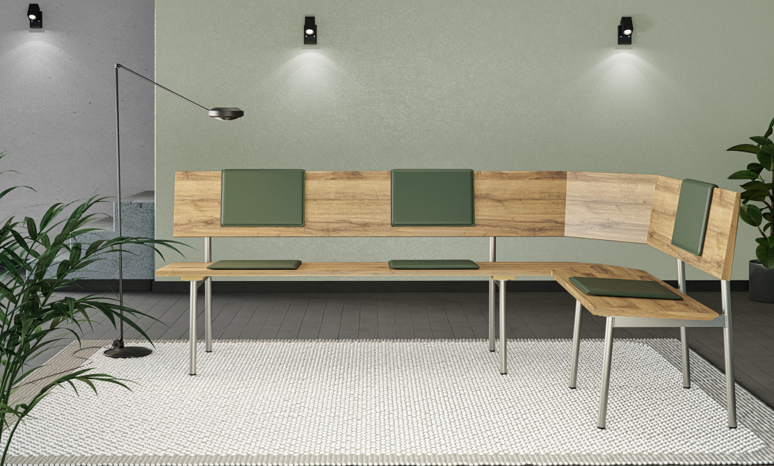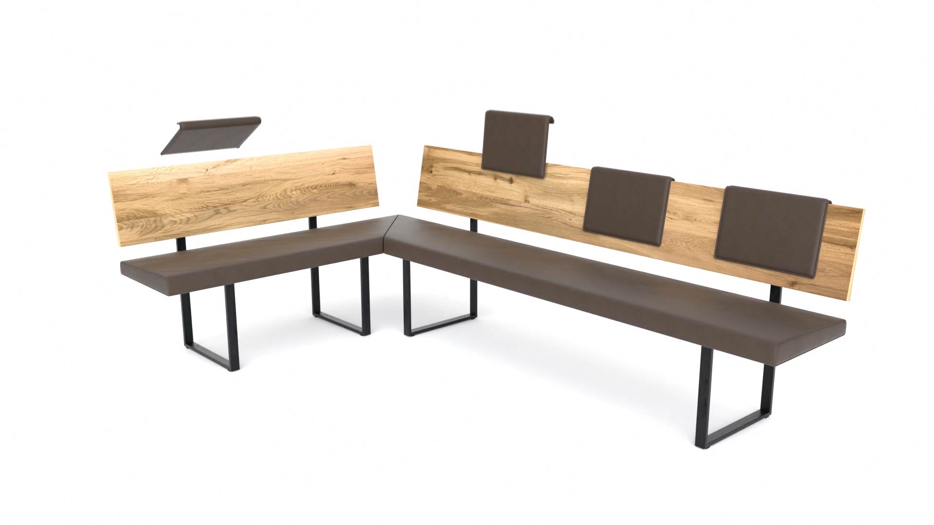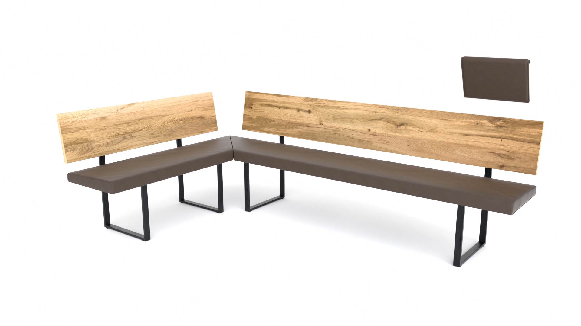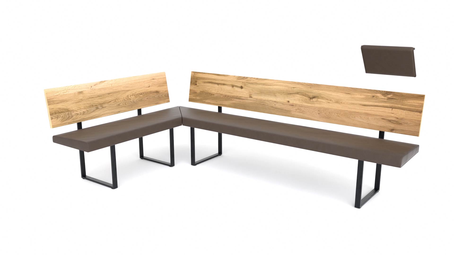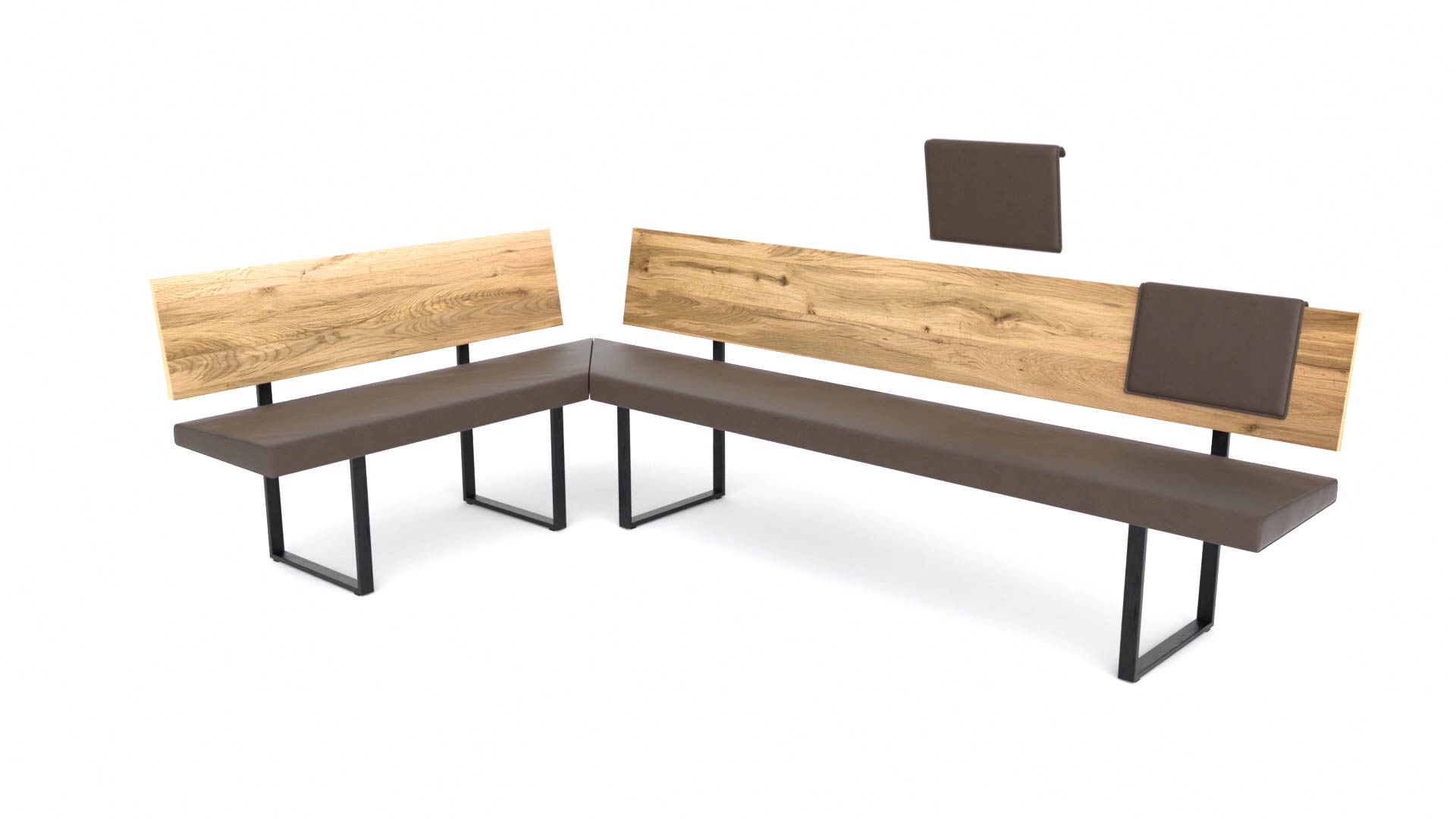 Mit dem Bankprogramm Calgary 4.0 können Sie sich alle Wünsche erfüllen. Zentimetergenau nach Ihren Vorgaben fertigen wir Ihnen diese Bank in Holz oder Polsterausführung. Die Ecke können Sie offen oder geschlossen gestalten und wahlweise mit einem praktischen Eckbrett versehen. Sogar eine Truhe bauen wir Ihnen am Sitz ein. Alpenländisch wird die Ausstrahlung mit Holzteilen, welche eine Baumkante aufweisen. Sie haben die Wahl!